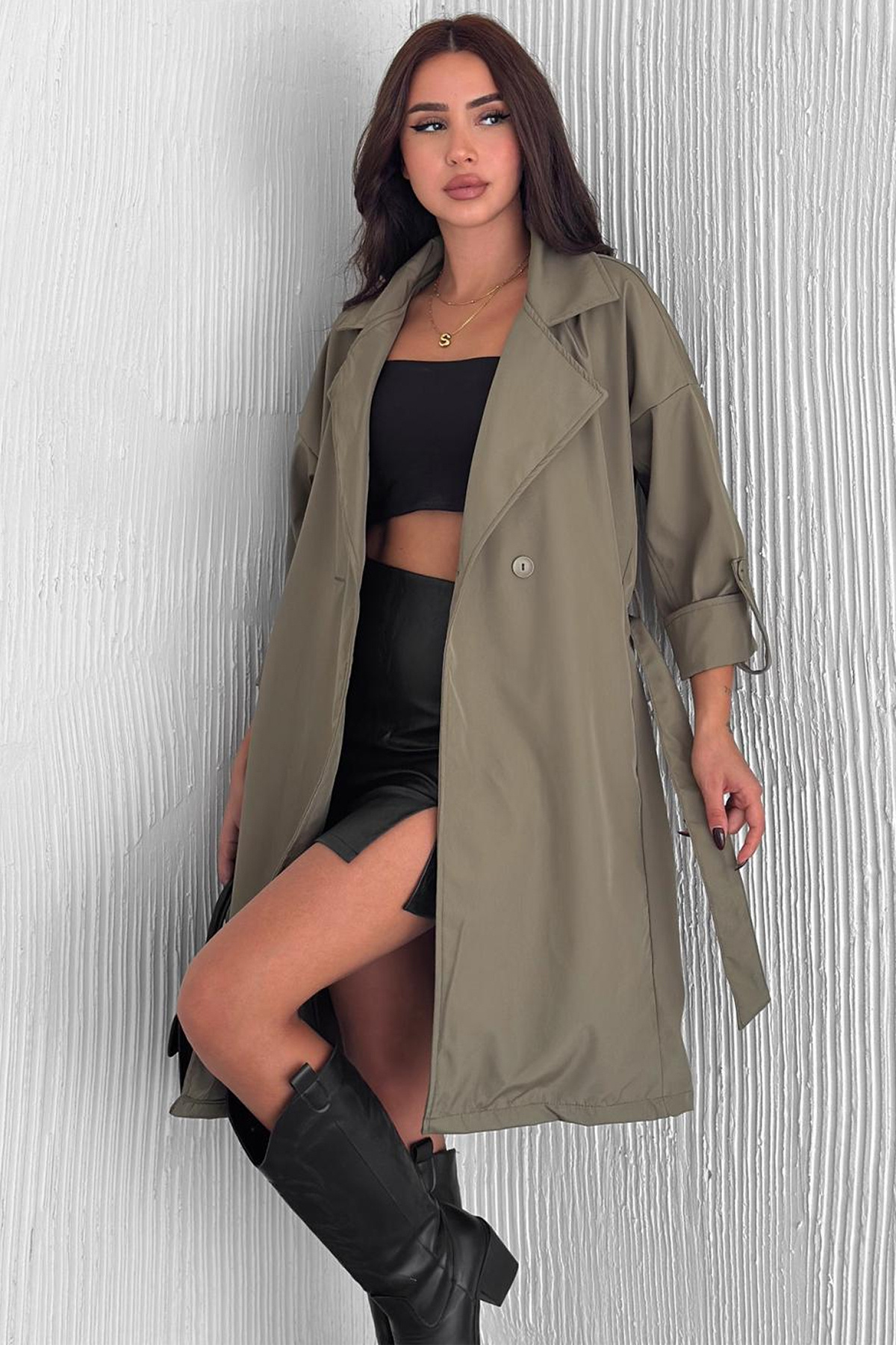 Kadın Kolu Katlamalı Kuşaklı Uzun Trençkot – Astarsız Hafif Tasarım Kadın Kolu Katlamalı Kuşaklı Uzun Trençkot – Astarsız Hafif Tasarım 1598-trenckot L