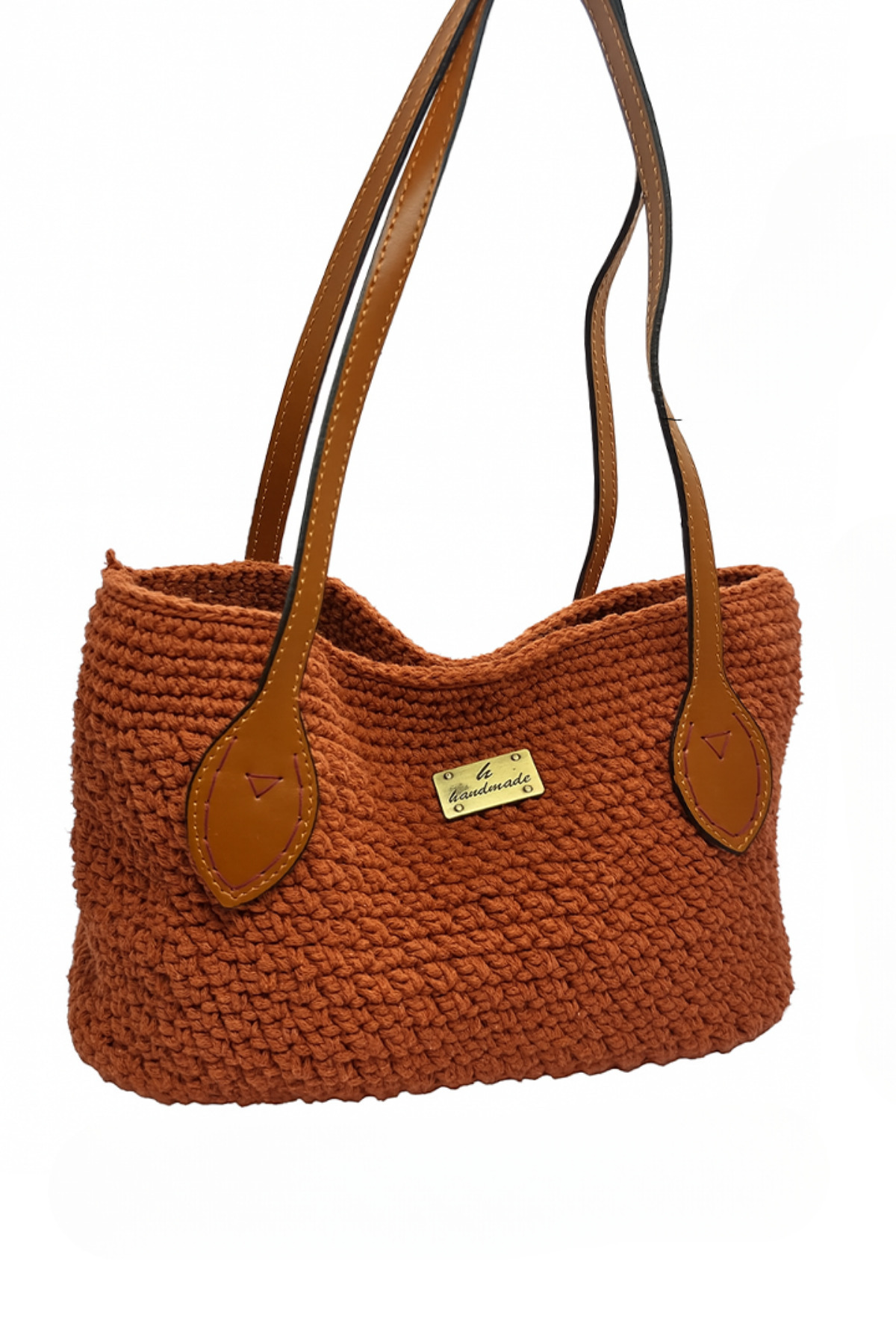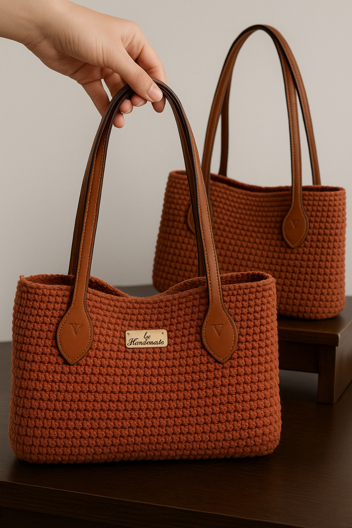 El Örgüsü Tığ İşi Omuz Çantası – Deri Saplı Kiremit Kırmızısı Tote Çanta El Örgüsü Tığ İşi Omuz Çantası – Deri Saplı Kiremit Kırmızısı Tote Çanta CNT-03 Standart
