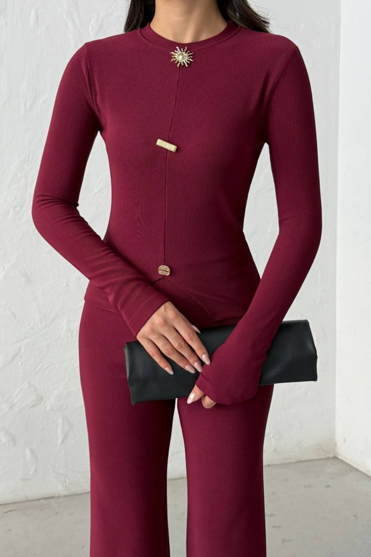 Kadın Bordo Ottoman Kumaş Düğme Detaylı Şık İkili Takım Kadın Bordo Ottoman Kumaş Düğme Detaylı Şık İkili Takım 2018 L