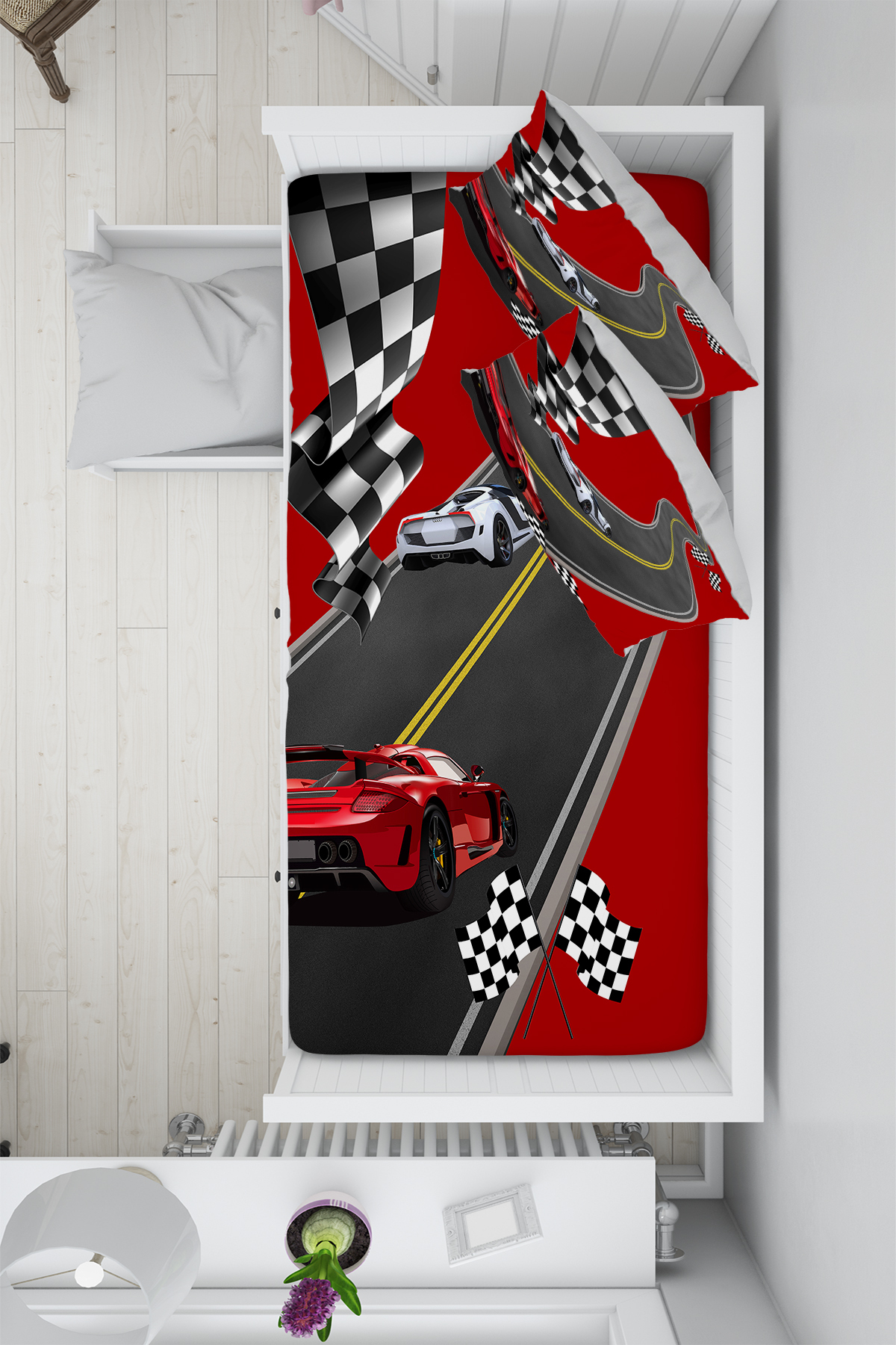 Yarış Arabalı Yol Bayraklı Yatak Örtüsü, Yastık Kılıfı HEDİYE Yarış Arabalı Yol Bayraklı Yatak Örtüsü, Yastık Kılıfı HEDİYE CEYO57 تک سایز