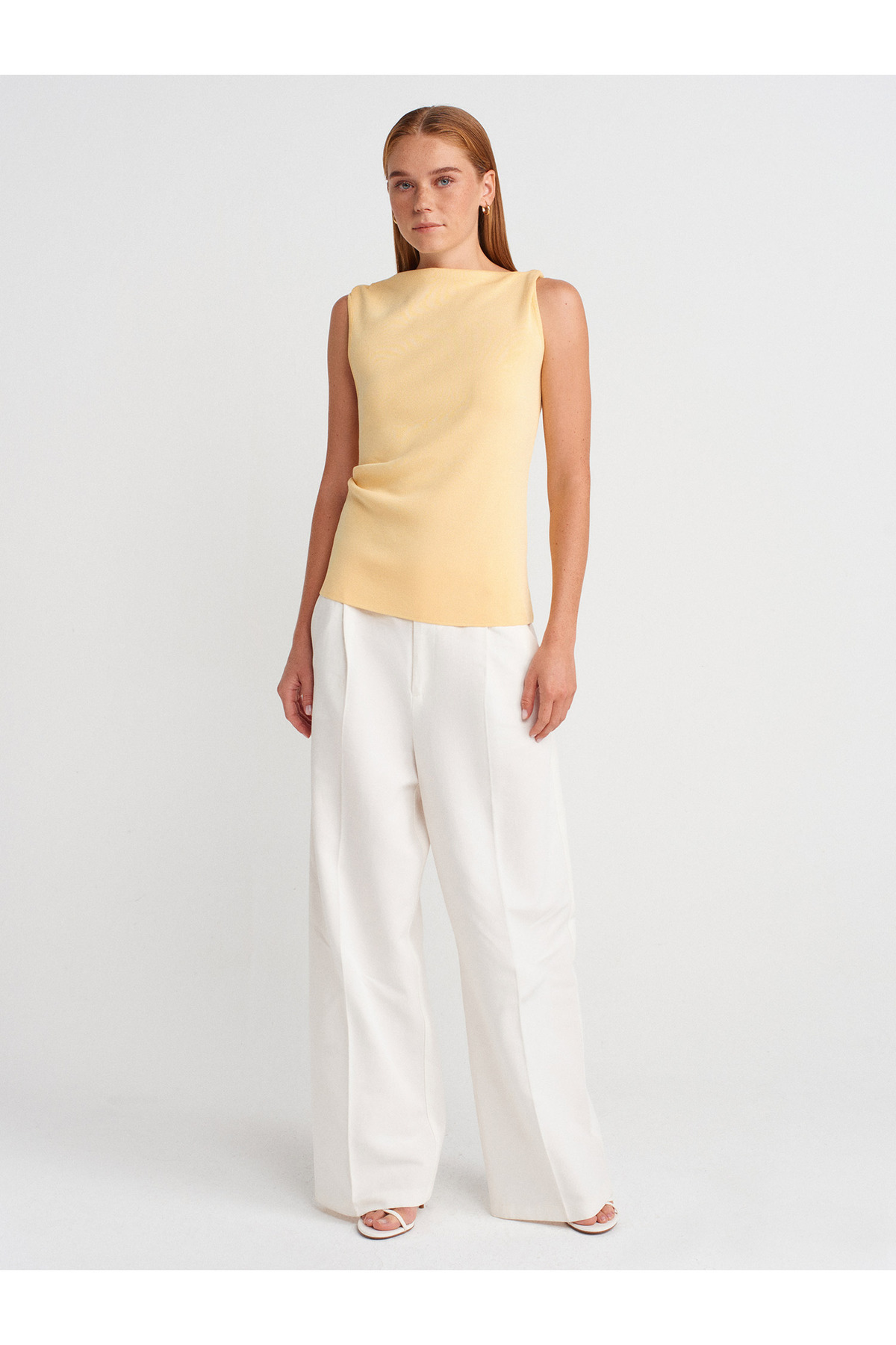 10778 Kayık Yaka Drapeli İnce Triko Bluz-Sarı 10778 Kayık Yaka Drapeli İnce Triko Bluz-Sarı 101A10778 Standart