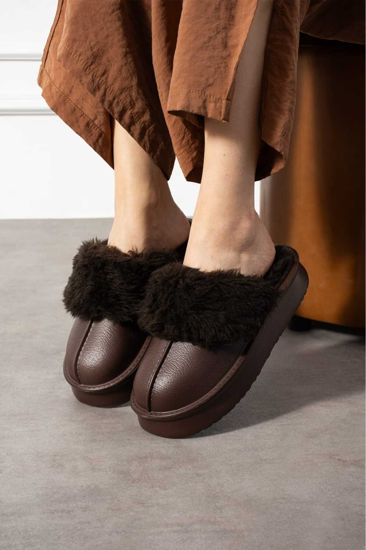 Taba Içi Kürklü Kışlık Terlik Ev Terliği Taba Içi Kürklü Kışlık Terlik Ev Terliği MD25502 40