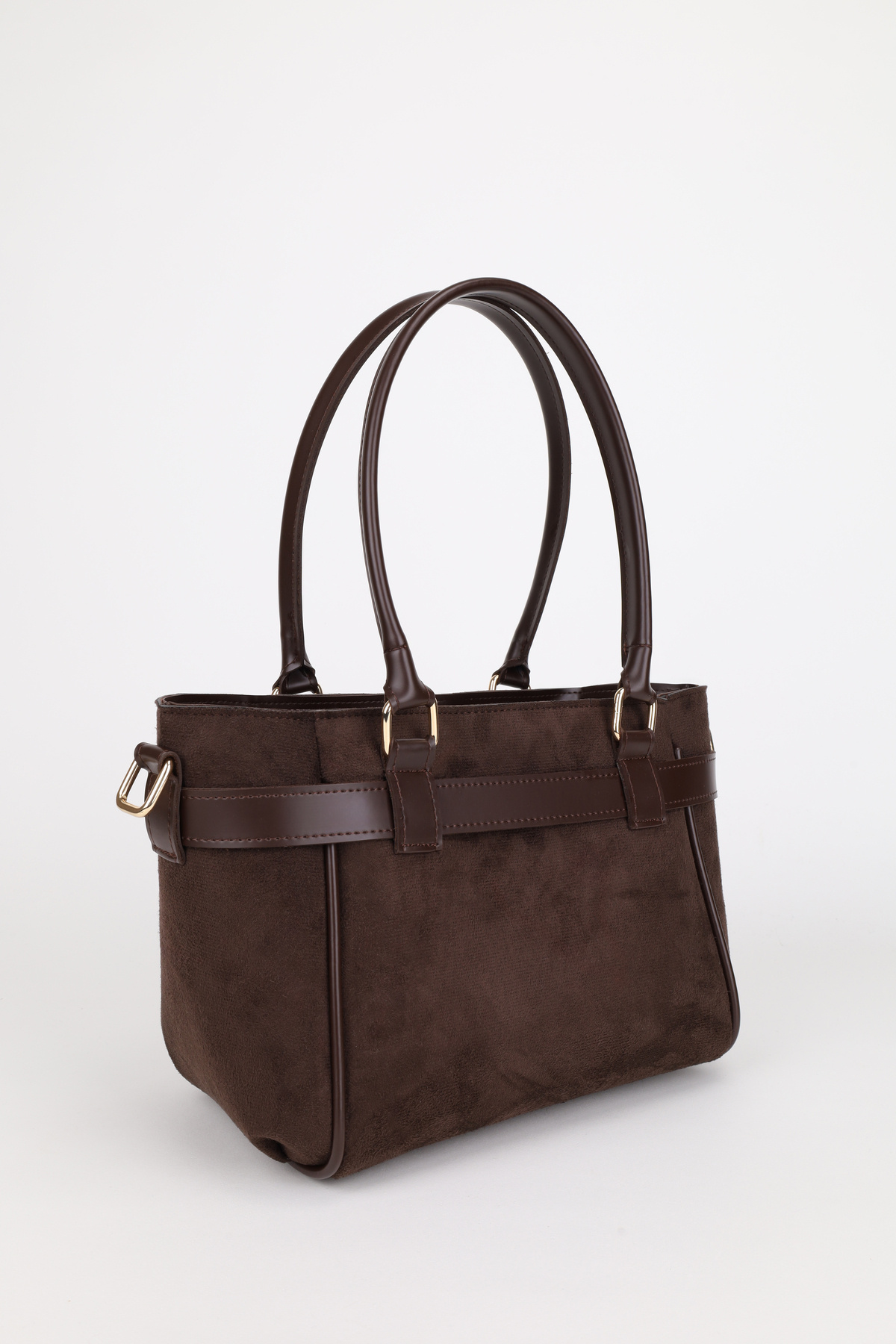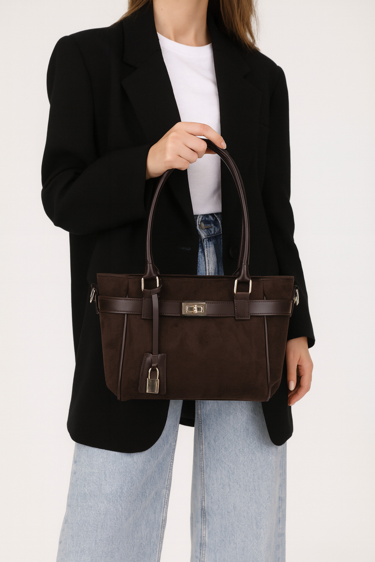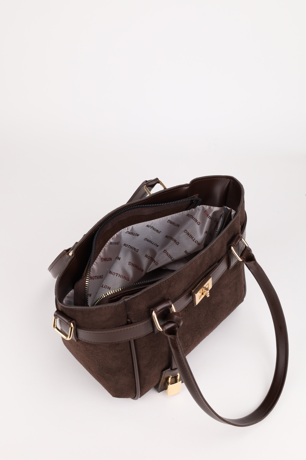 Kadın Süet Kahve Kemer ve Kilit Charm Detaylı Fermuar Kapamalı El ve Omuz Çantası Lotus Kadın Süet Kahve Kemer ve Kilit Charm Detaylı Fermuar Kapamalı El ve Omuz Çantası Lotus Lotus0001 Standart