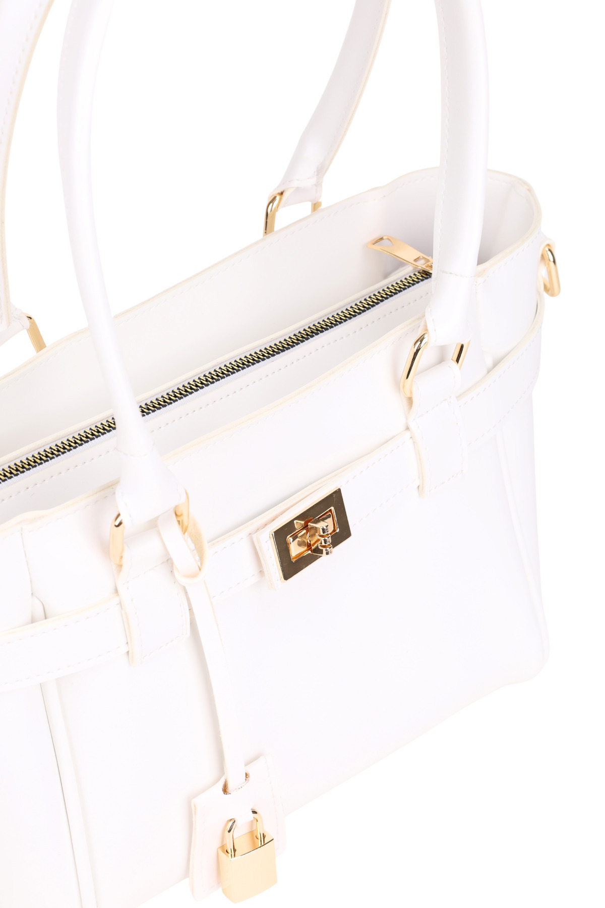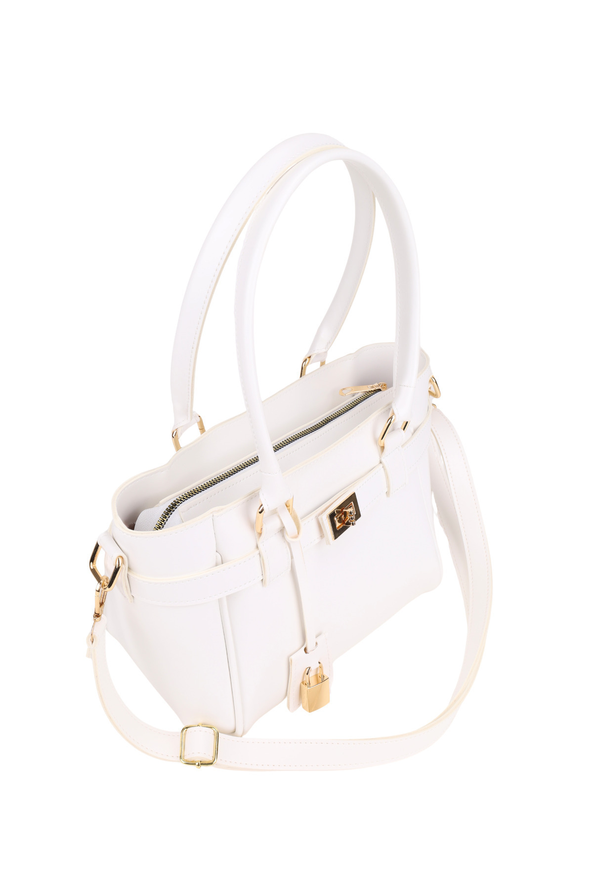 Kadın Beyaz Kemer ve Kilit Charm Detaylı Fermuar Kapamalı El ve Omuz Çantası Lotus Kadın Beyaz Kemer ve Kilit Charm Detaylı Fermuar Kapamalı El ve Omuz Çantası Lotus Lotus0001 Standart