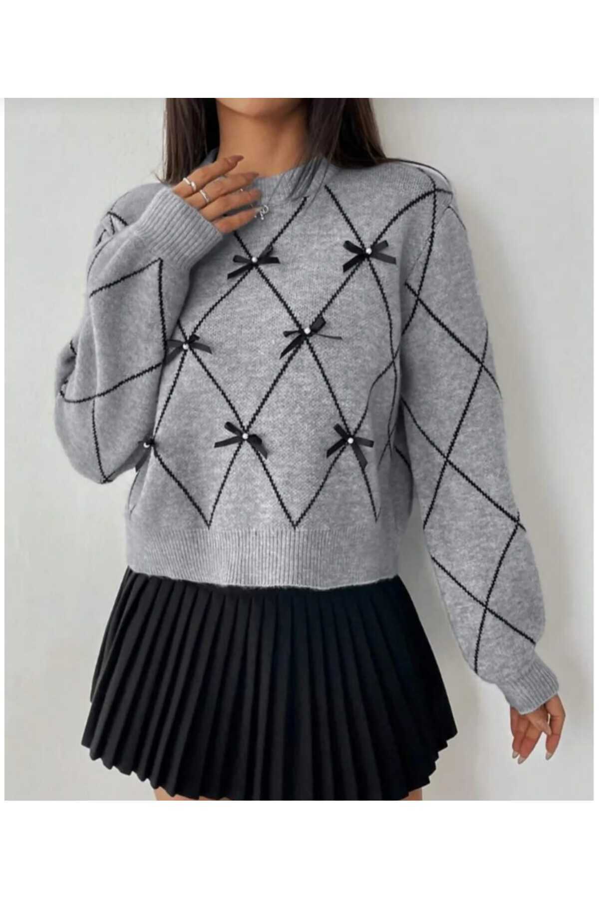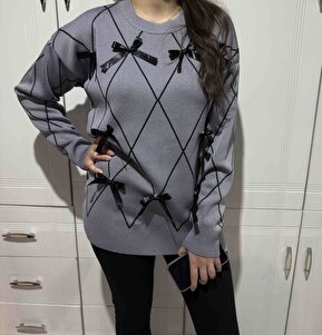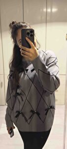 Kurdele Detaylı Simit Yaka Triko Kadın Kazak Kurdele Detaylı Simit Yaka Triko Kadın Kazak 0010 L