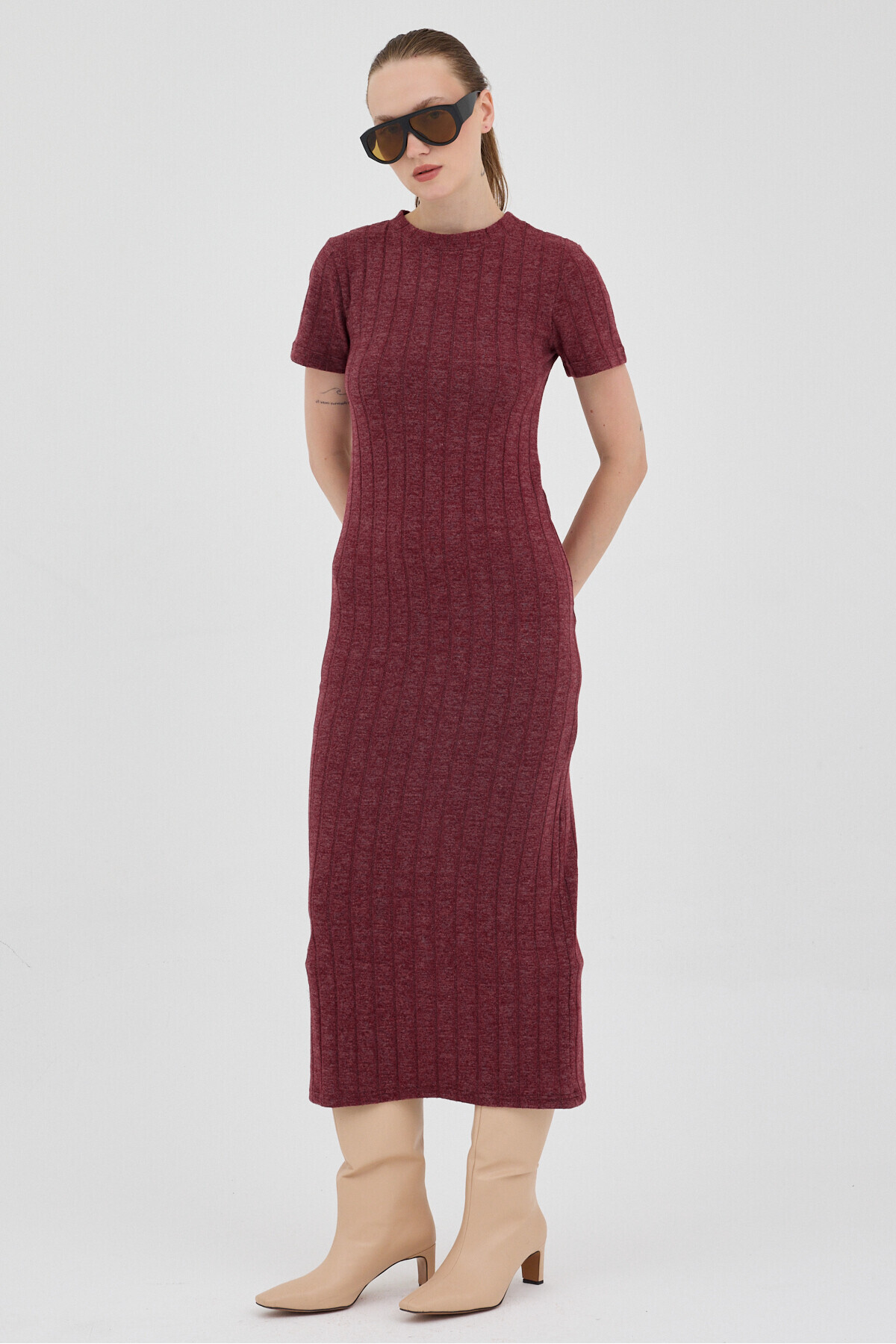 8131A Kısa Kol Fitilli Dar Eelbise Bordo 8131A Kısa Kol Fitilli Dar Eelbise Bordo 26K1123UST038 42