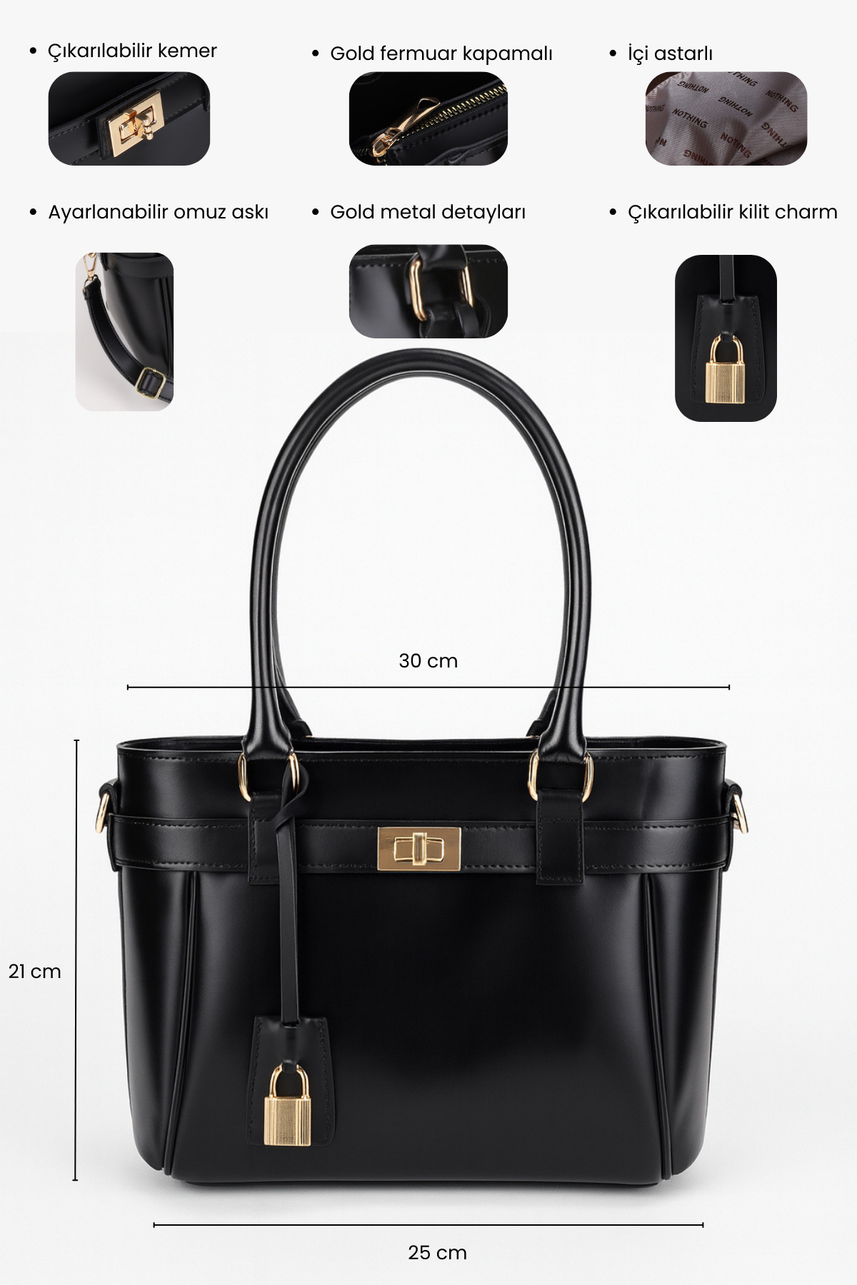 Kadın Siyah Kemer ve Kilit Charm Detaylı Fermuar Kapamalı El ve Omuz Çantası Lotus Kadın Siyah Kemer ve Kilit Charm Detaylı Fermuar Kapamalı El ve Omuz Çantası Lotus Lotus0001 Standart