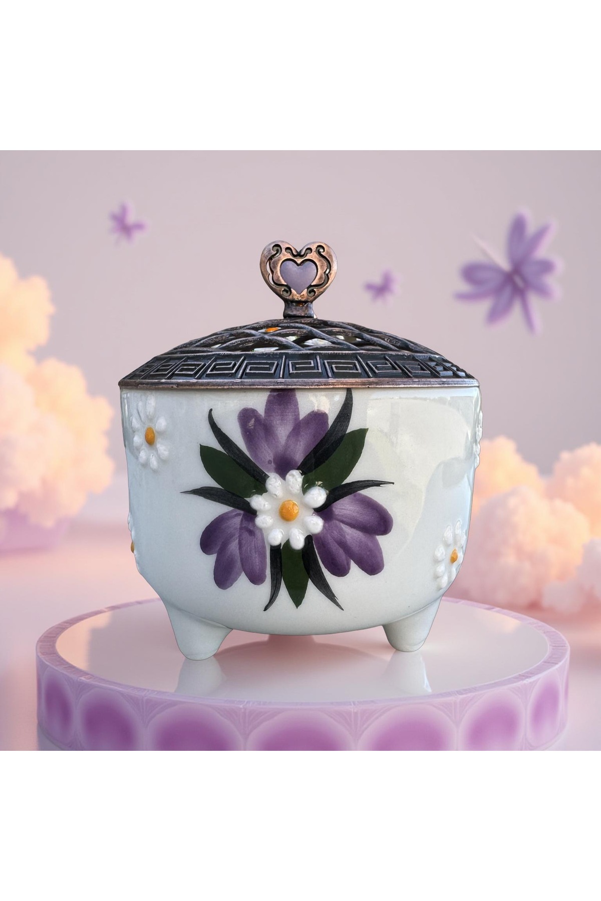 Ayşen seramik şekerlik Zamak kapaklı mor Çiğdem çiçeği Ayşen seramik şekerlik Zamak kapaklı mor Çiğdem çiçeği ayşen mor Çiğdem تک سایز