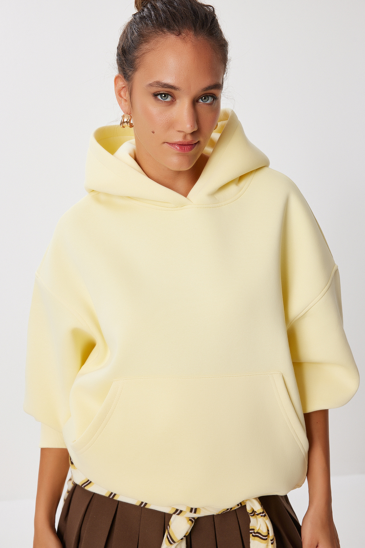 Oversize Kapüşonlu Şardonlu Örme Sweatshirt LMC0073 SARI Oversize Kapüşonlu Şardonlu Örme Sweatshirt LMC0073 SARI 40