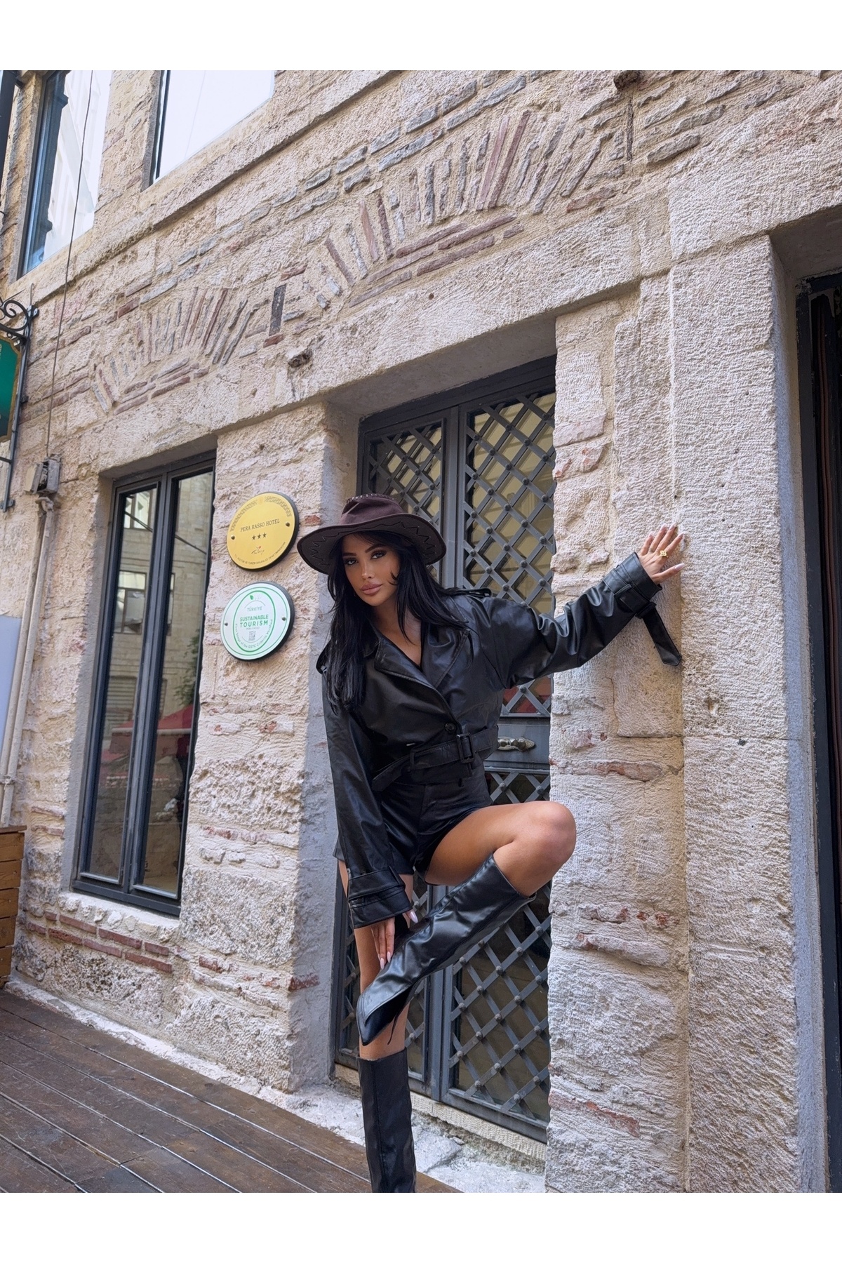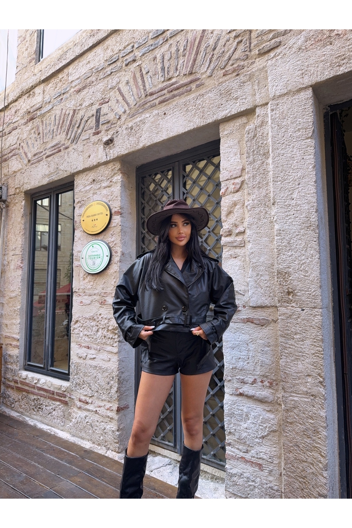 Kol ve Etek Kemer Detay Deri Ceket Kol ve Etek Kemer Detay Deri Ceket 2386