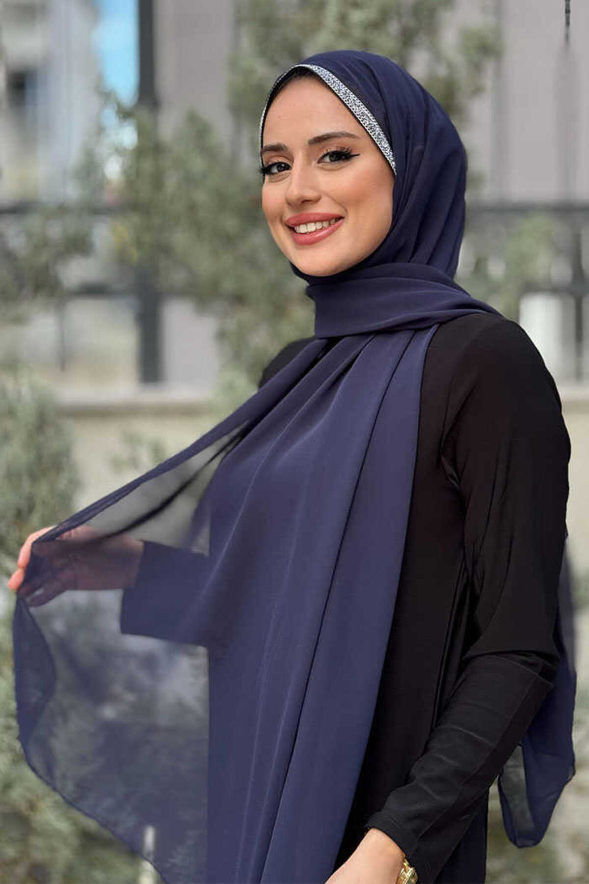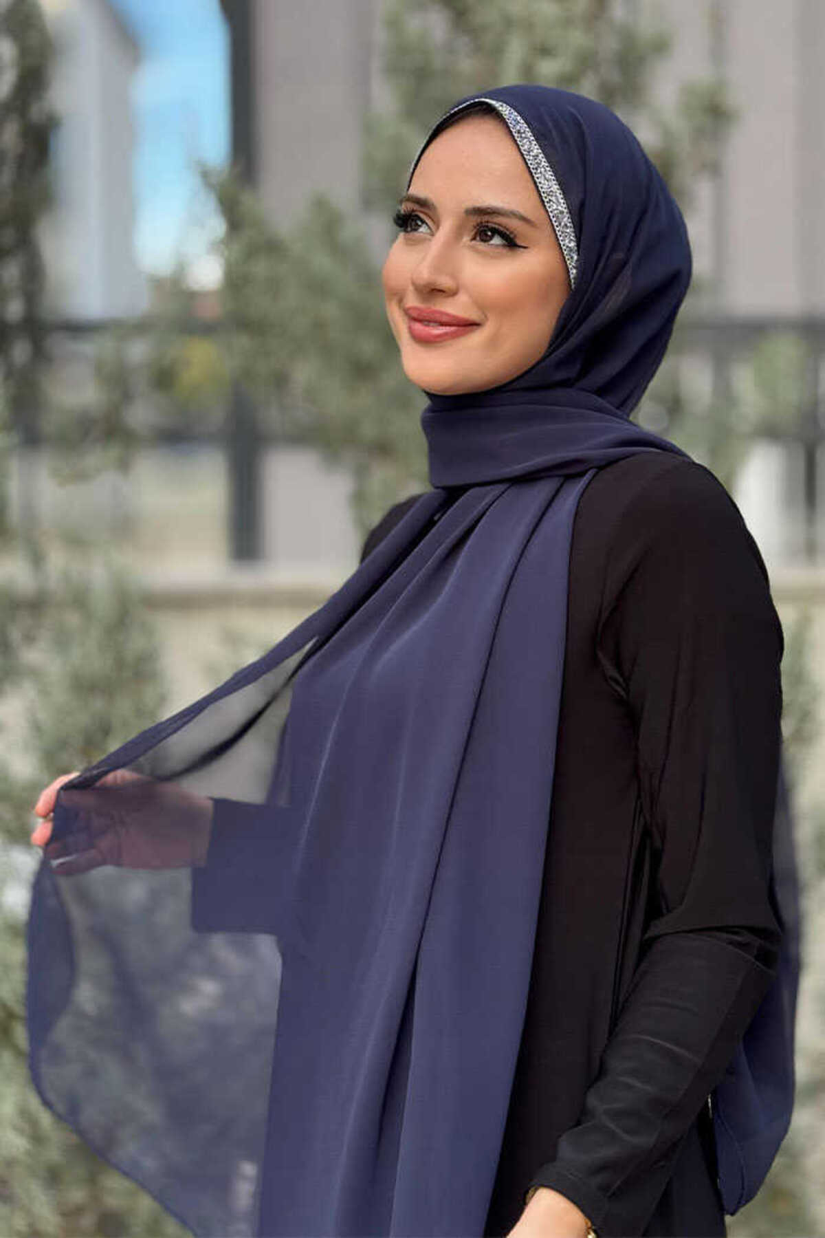 Taş Detaylı Şifon Şal 2026 Lacivert Taş Detaylı Şifon Şal 2026 Lacivert تک سایز