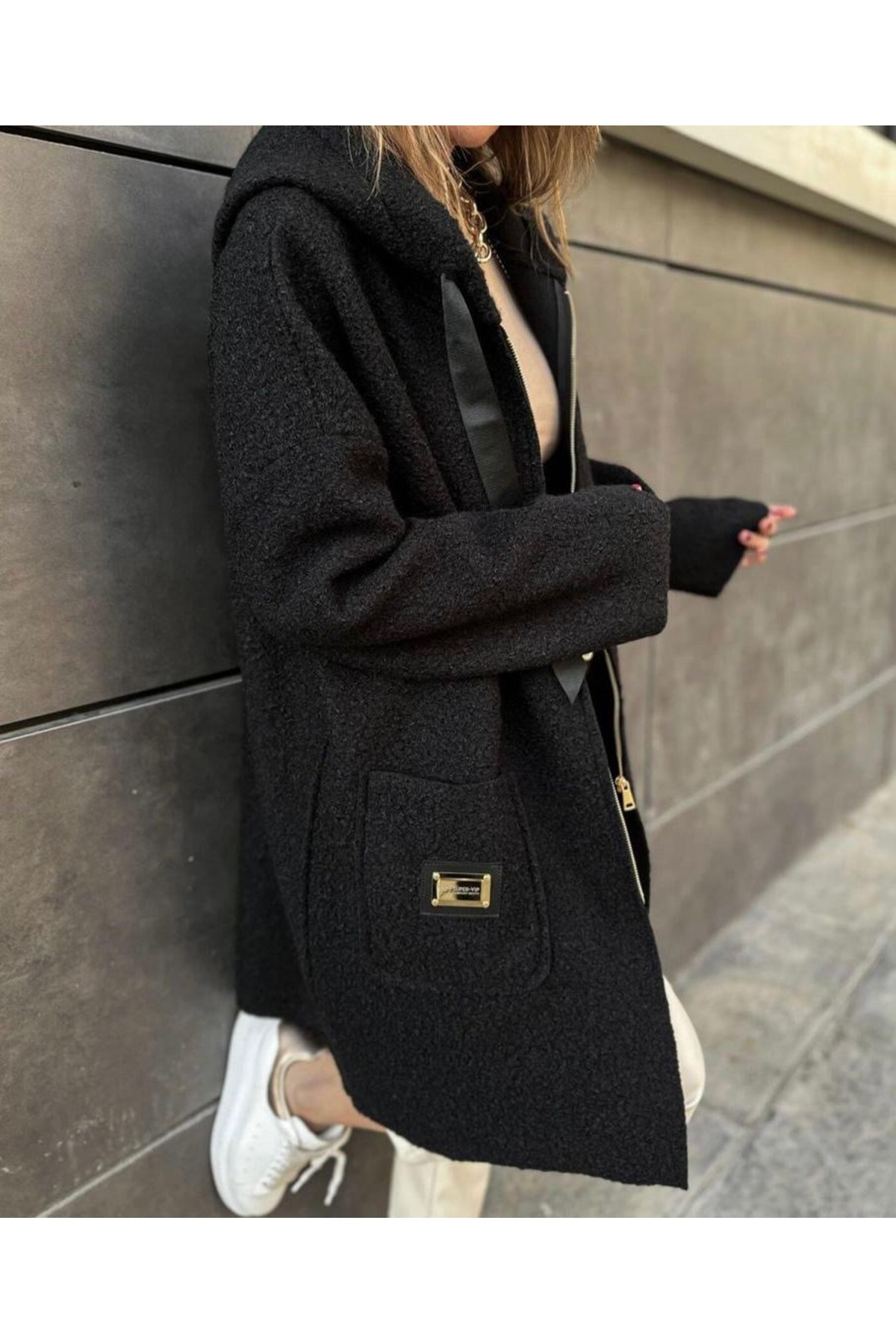 Fermuarlı Kapüşonlu Buklet Kumaş Kaban Fermuarlı Kapüşonlu Buklet Kumaş Kaban mzr1515 Standart