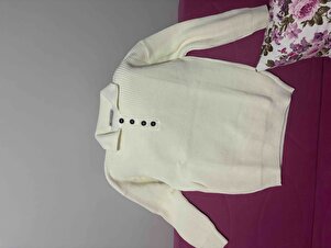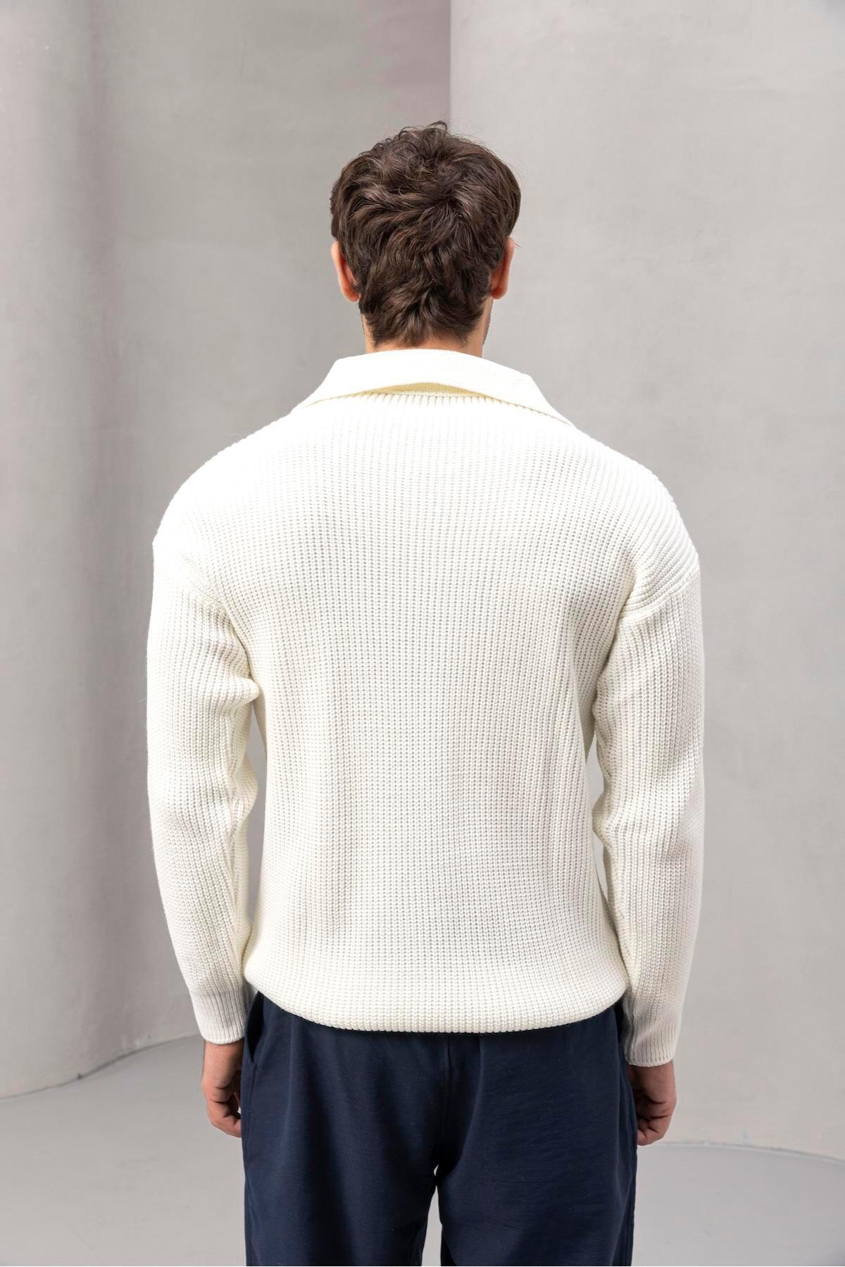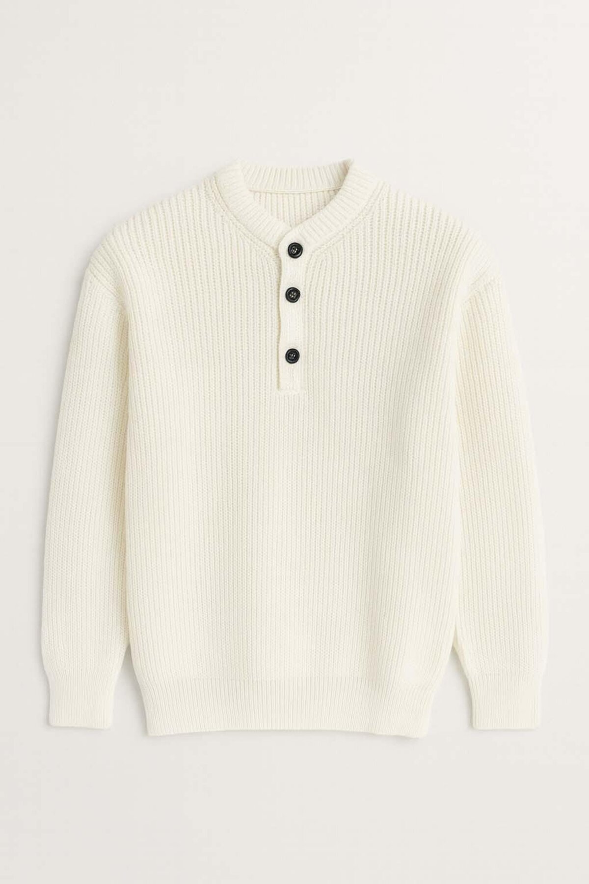 Oversize Selanik Örgü 4 Düğmeli Yarım Pat Rahat Kalıp Erkek Triko Kazak - Ekru Oversize Selanik Örgü 4 Düğmeli Yarım Pat Rahat Kalıp Erkek Triko Kazak - Ekru BK10026 XL