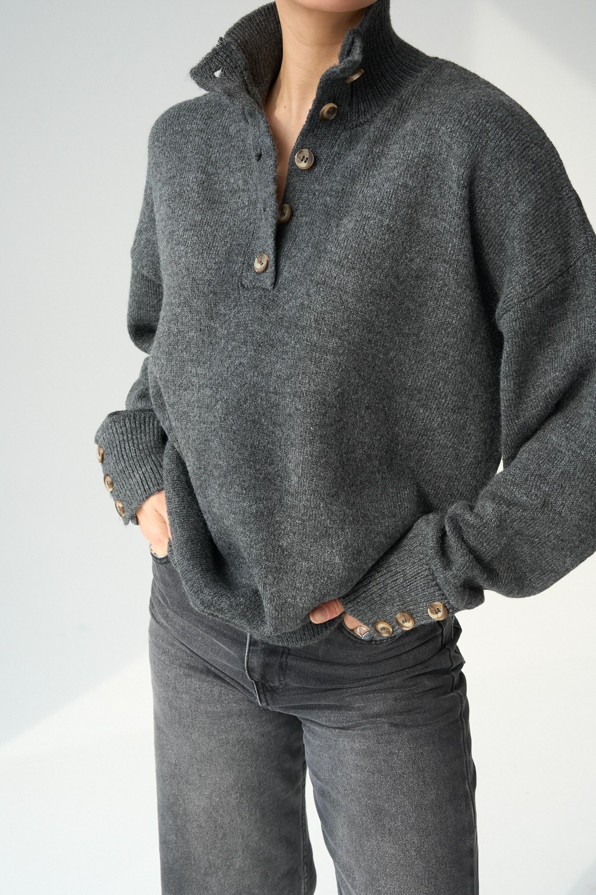 Kadın Oversize Kolları ve Yakası Düğmeli Yumoş Triko Kazak Kadın Oversize Kolları ve Yakası Düğmeli Yumoş Triko Kazak VV2007 Standart