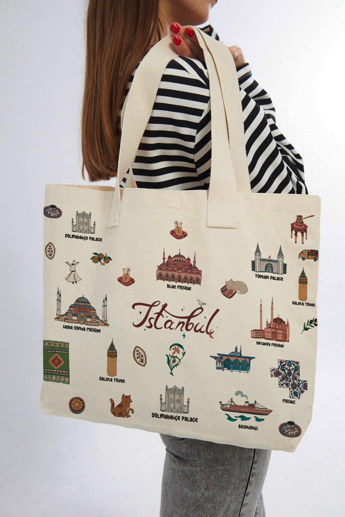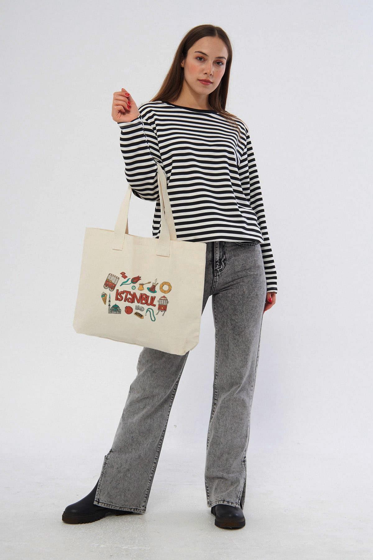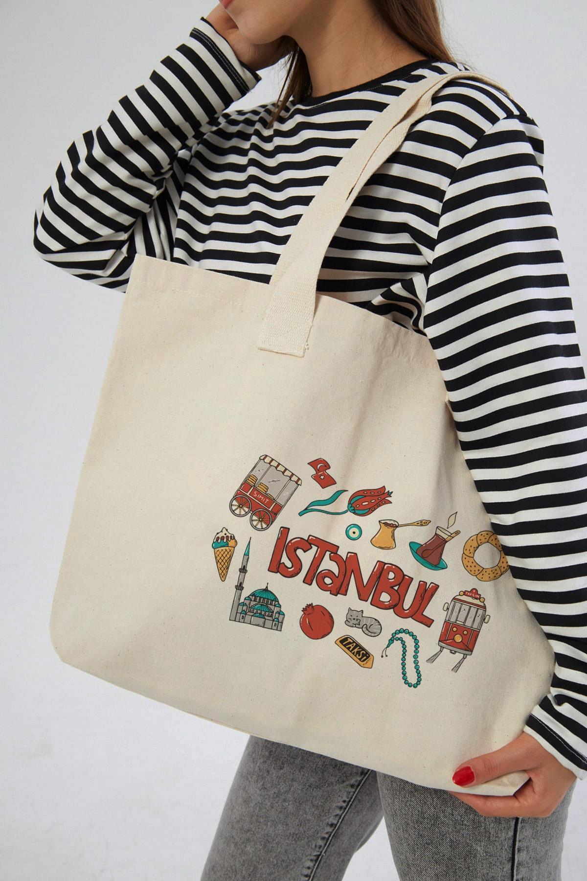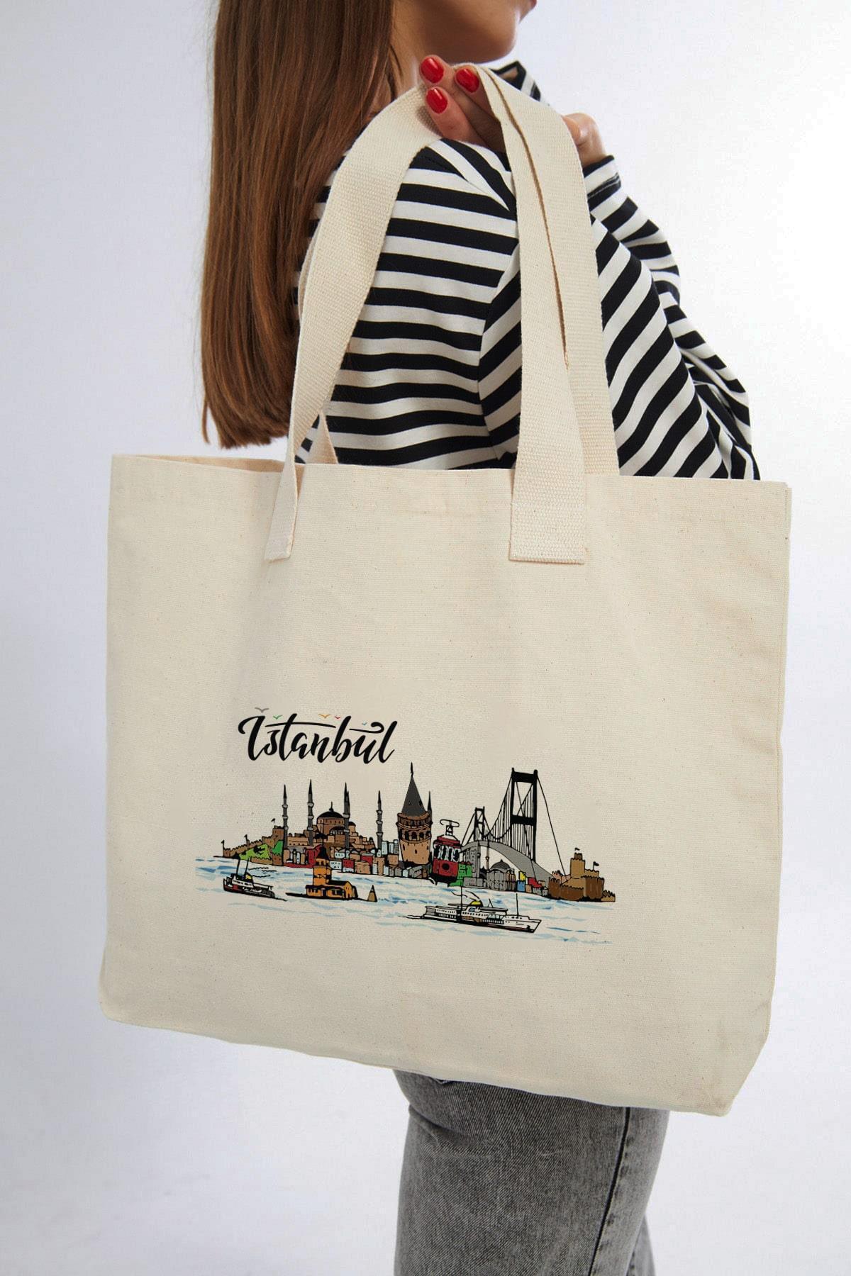 İstanbul Simit Çay Baskılı Yatay Kanvas Bez Çanta İstanbul Simit Çay Baskılı Yatay Kanvas Bez Çanta 2454 Standart
