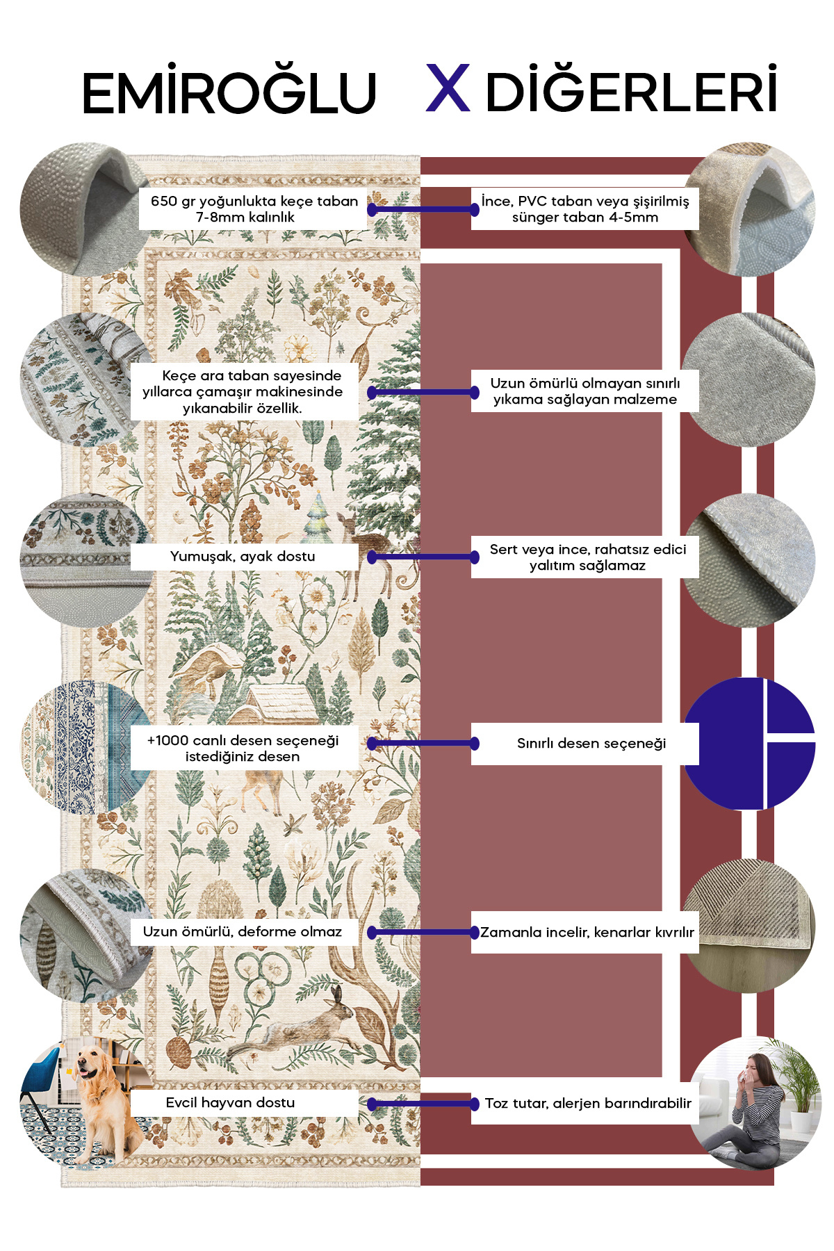 Dama Çerçeve Çiçekli Motif Kaymaz Taban Salon Halısı – Yıkanabilir, Şık ve Konforlu Tasarım Dama Çerçeve Çiçekli Motif Kaymaz Taban Salon Halısı – Yıkanabilir, Şık ve Konforlu Tasarım EMR11-MCK010 160 x 230