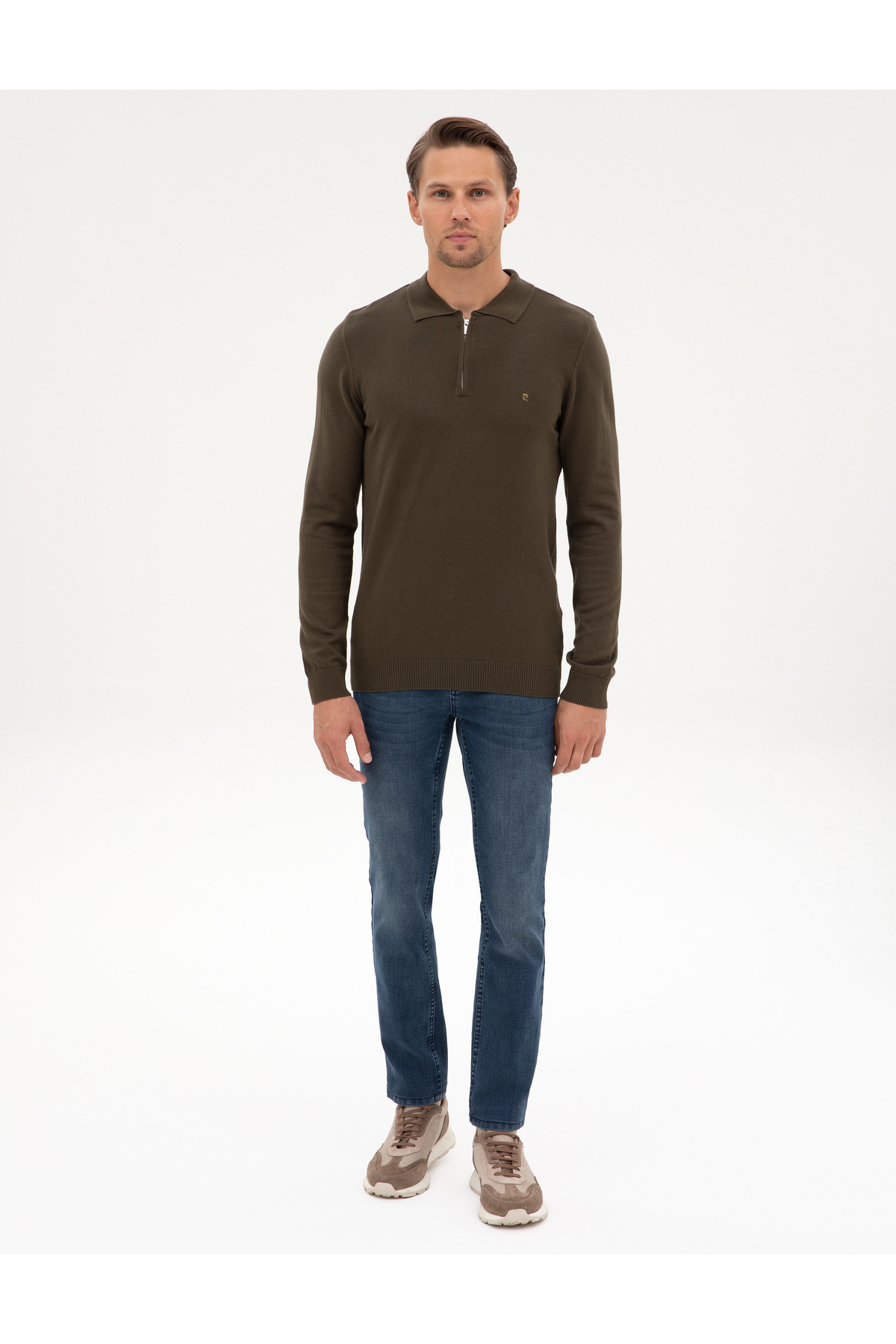 Haki Slim Fit Polo Yaka Fermuarlı Basic Triko Kazak 50314191-VR027 Haki Slim Fit Polo Yaka Fermuarlı Basic Triko Kazak 50314191-VR027 1204692 3XL