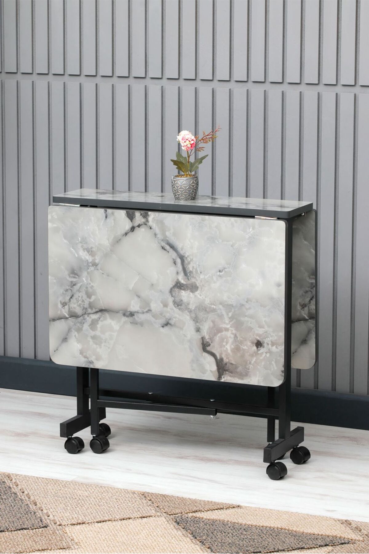 Ogat Serisi 1.Sınıf Hazar Desen Açılabilir Tekerlekli Masa Yemek Masası Siyah Metal Ayak Ogat Serisi 1.Sınıf Hazar Desen Açılabilir Tekerlekli Masa Yemek Masası Siyah Metal Ayak 22OGAT01SYH 70 x 110