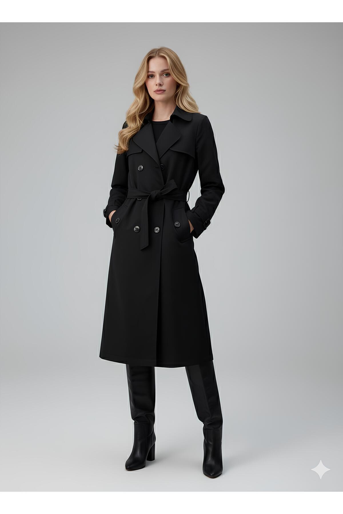 Kuşaklı Uzun Siyah Trençkot Kuşaklı Uzun Siyah Trençkot 21117-TRENÇKOT 48