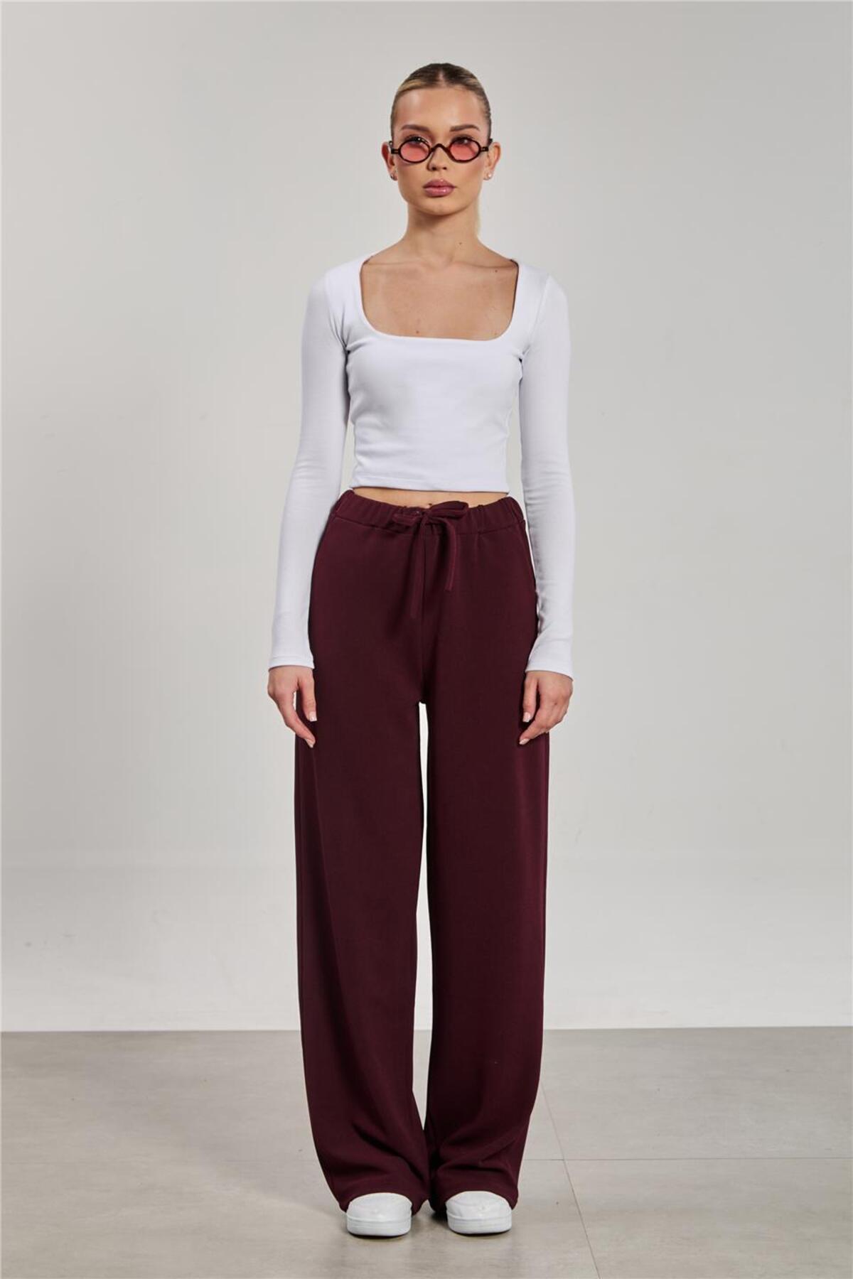 Kadın Kemerli Bol Paça Kumaş Pantolon - Kahve Kadın Kemerli Bol Paça Kumaş Pantolon - Kahve 992-25M04006 XL
