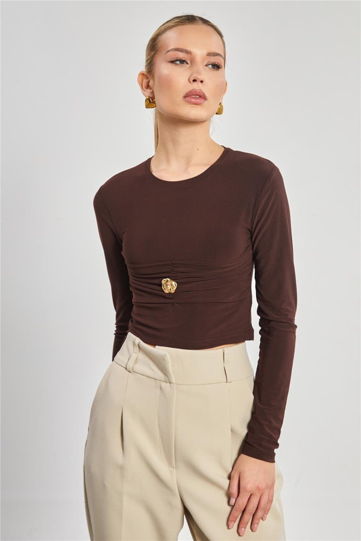 Kadın Madonna Yaka Tokalı Bluz - Siyah Kadın Madonna Yaka Tokalı Bluz - Siyah 1012-25M35011 L