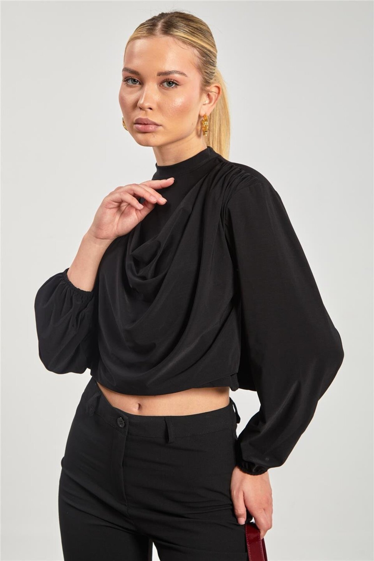 Kadın Gold Düğmeli Sandy Bluz - Siyah Kadın Gold Düğmeli Sandy Bluz - Siyah 1012-25M35004 L