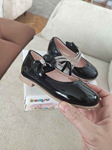 Siyah Rugan Çocuk Taşlı Babet Ayakkabı Siyah Rugan Çocuk Taşlı Babet Ayakkabı 00030 36
