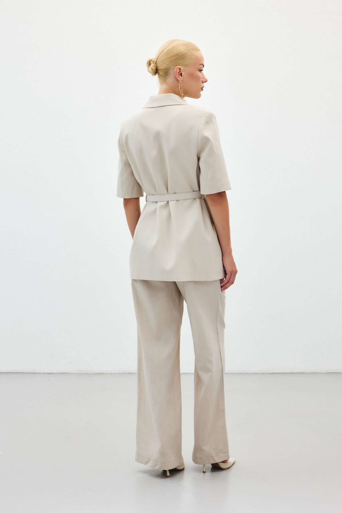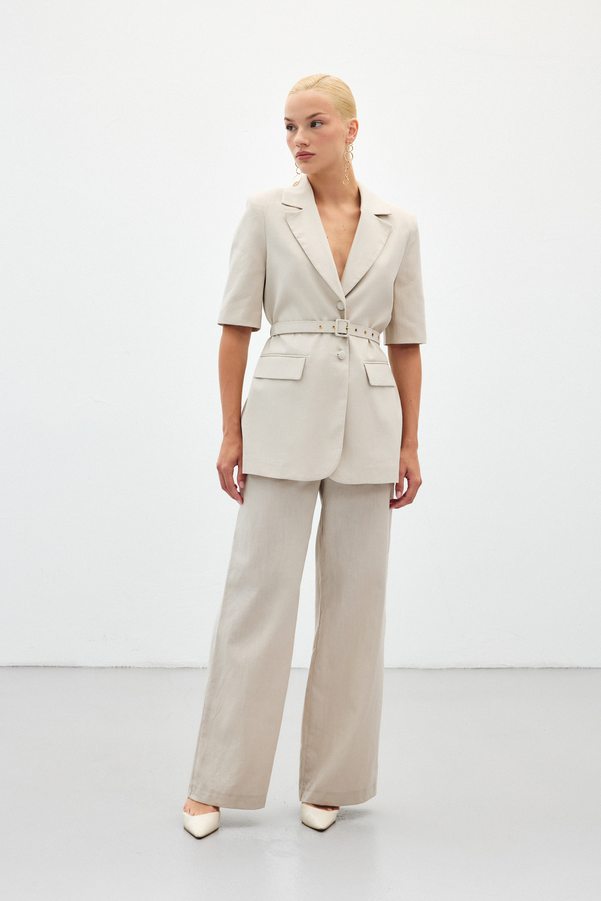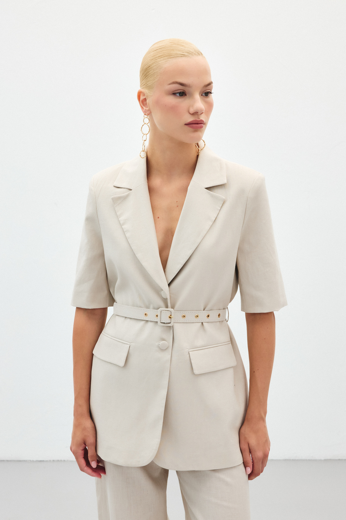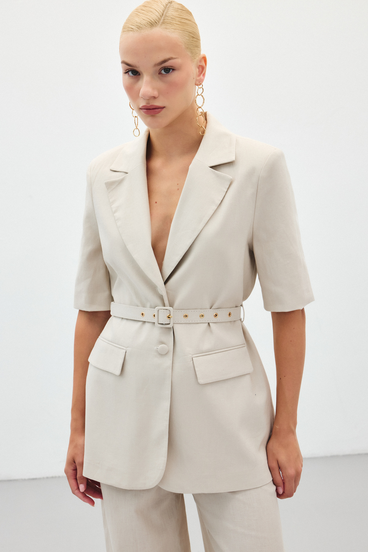 Kısa Kollu Kemerli Ceket - Taş Kısa Kollu Kemerli Ceket - Taş STN139KYE1867 40