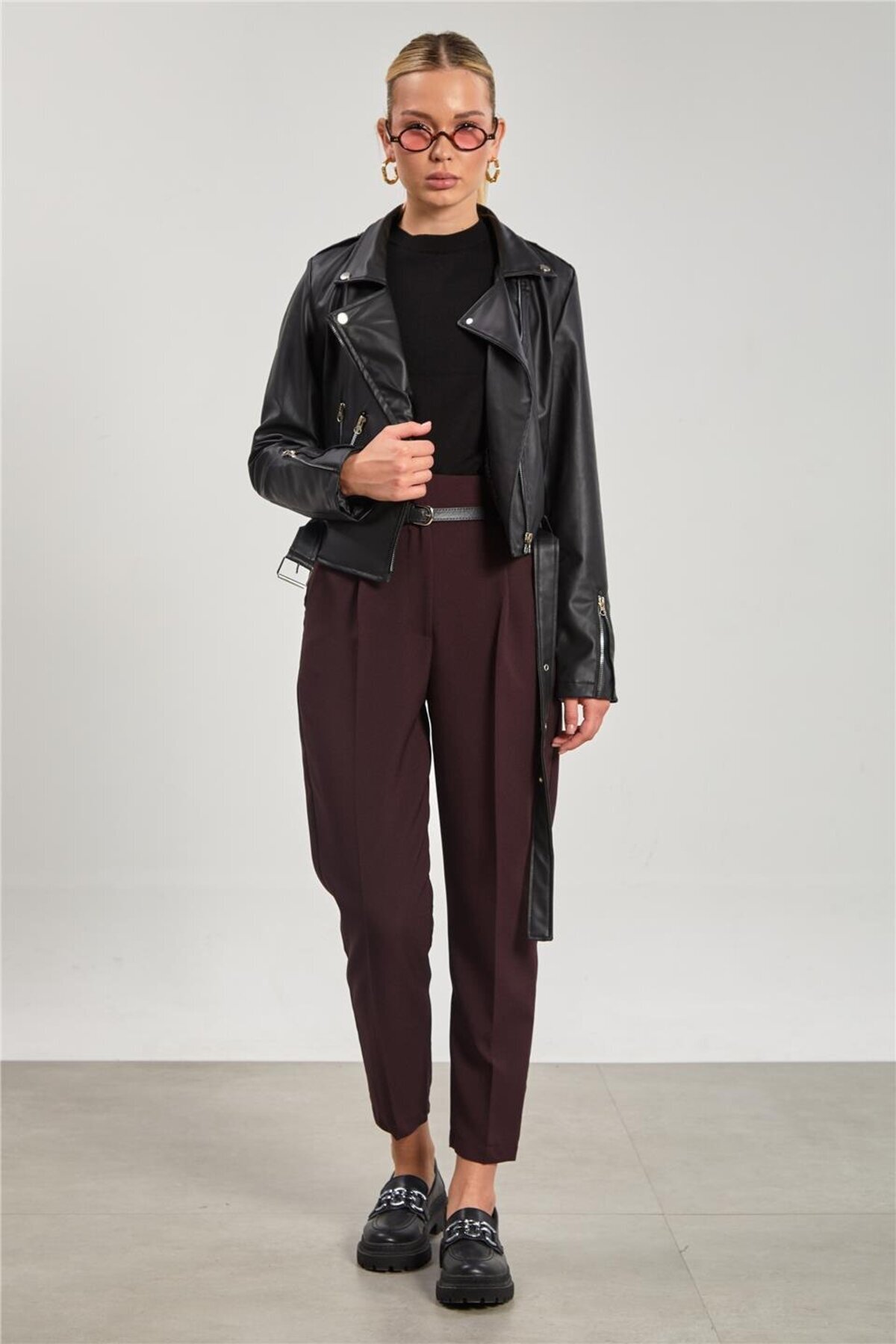Kadın Kruvaze Yaka Suni Deri Mont - Siyah Kadın Kruvaze Yaka Suni Deri Mont - Siyah 1015-25K124002 L