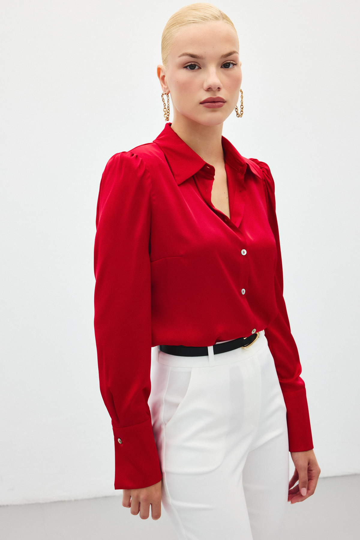 Vatkalı Saten Gömlek - Kırmızı Vatkalı Saten Gömlek - Kırmızı STN139KGO865 42