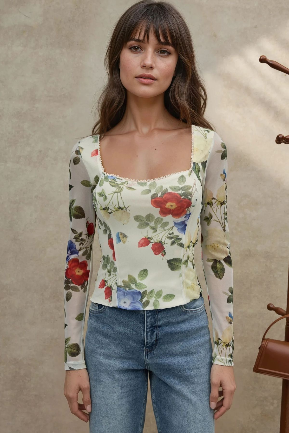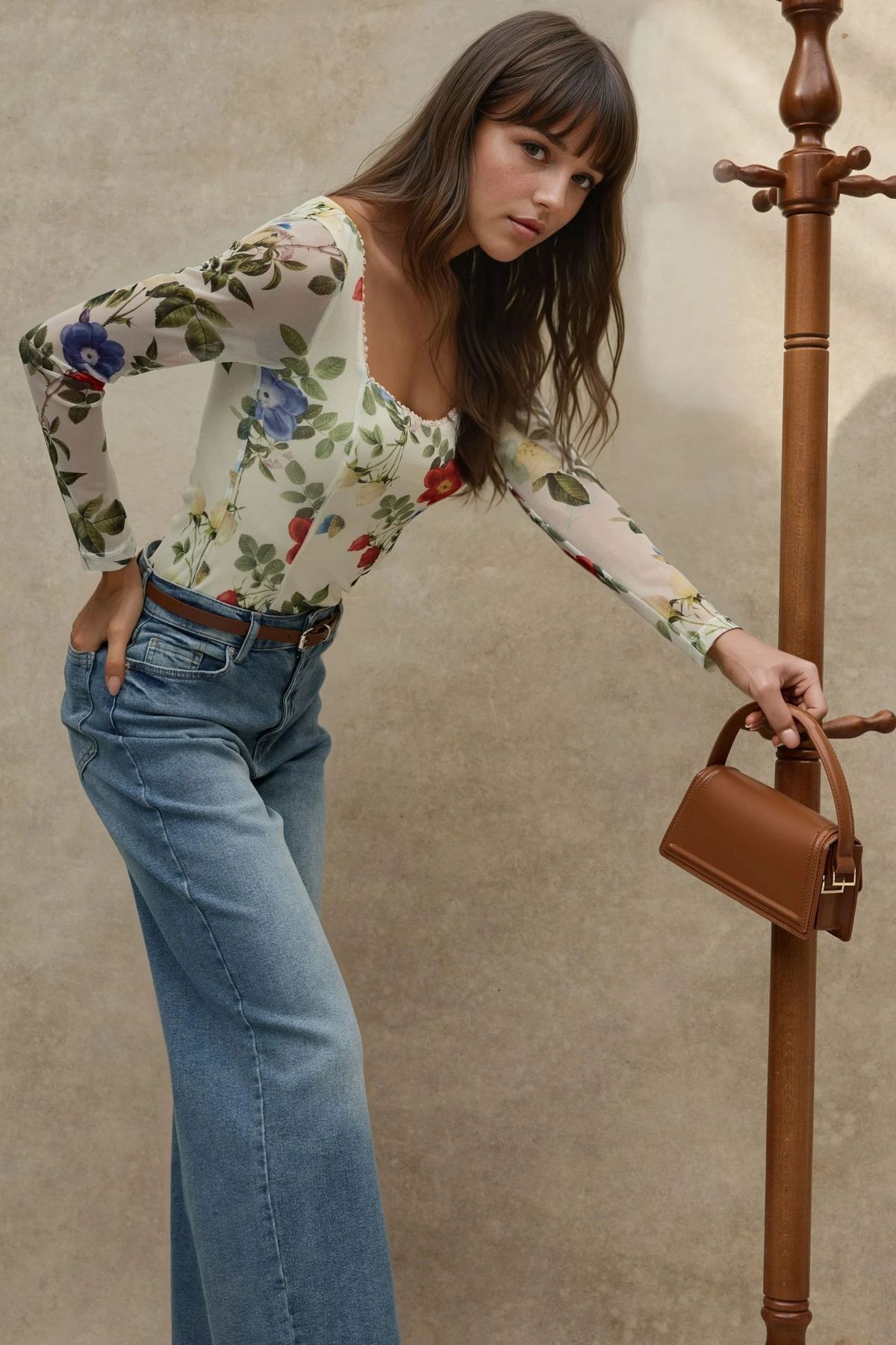 Kalp Yaka Baskılı Uzun Kollu Üst Kalp Yaka Baskılı Uzun Kollu Üst MB50WS1Q XL