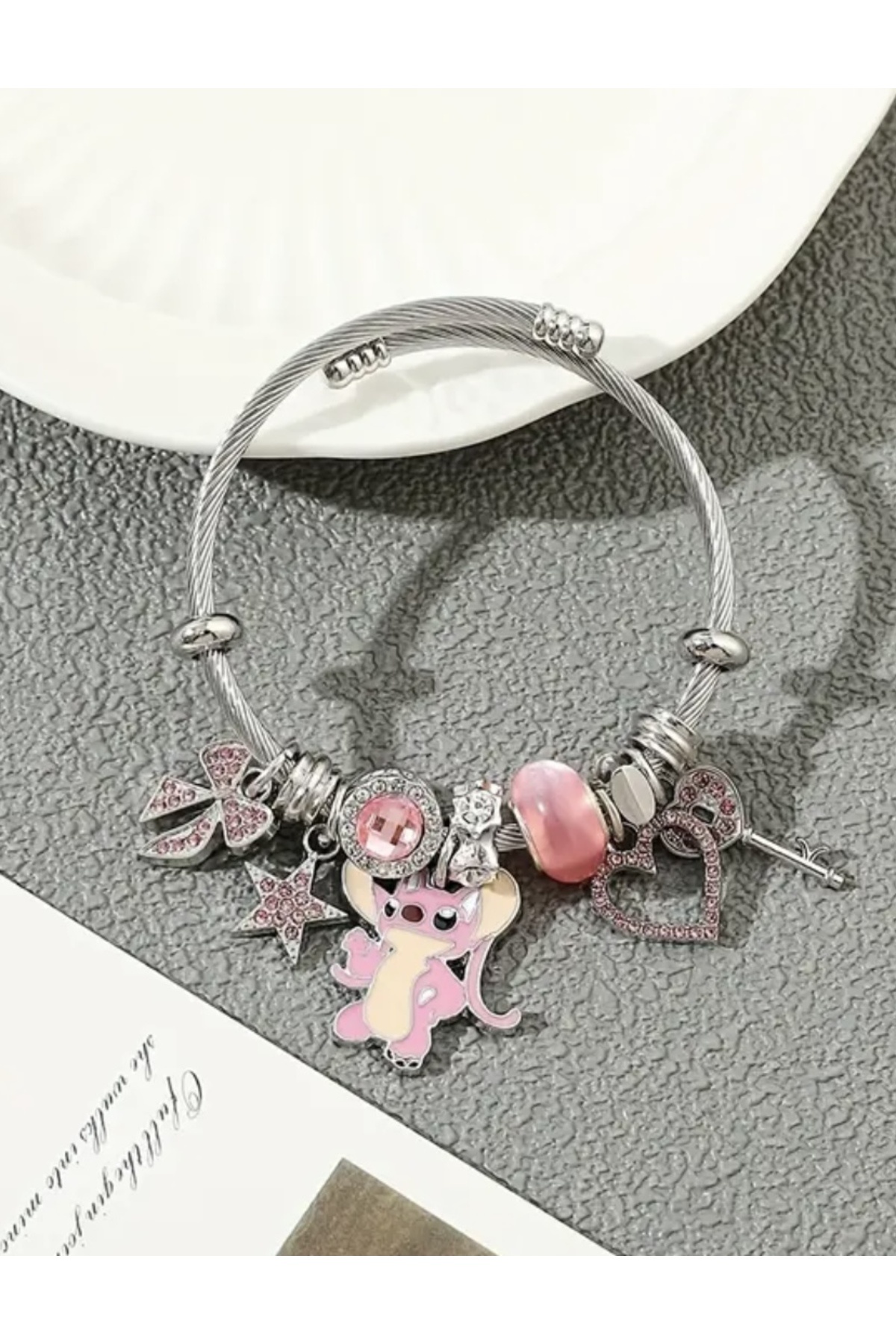 İtalyan Charm Bileklik ve 3 Adet Charmlı Ayarlanabilir Çelik Sallantılı Stitch Charm Bileklik İtalyan Charm Bileklik ve 3 Adet Charmlı Ayarlanabilir Çelik Sallantılı Stitch Charm Bileklik NLEU0198 18 cm