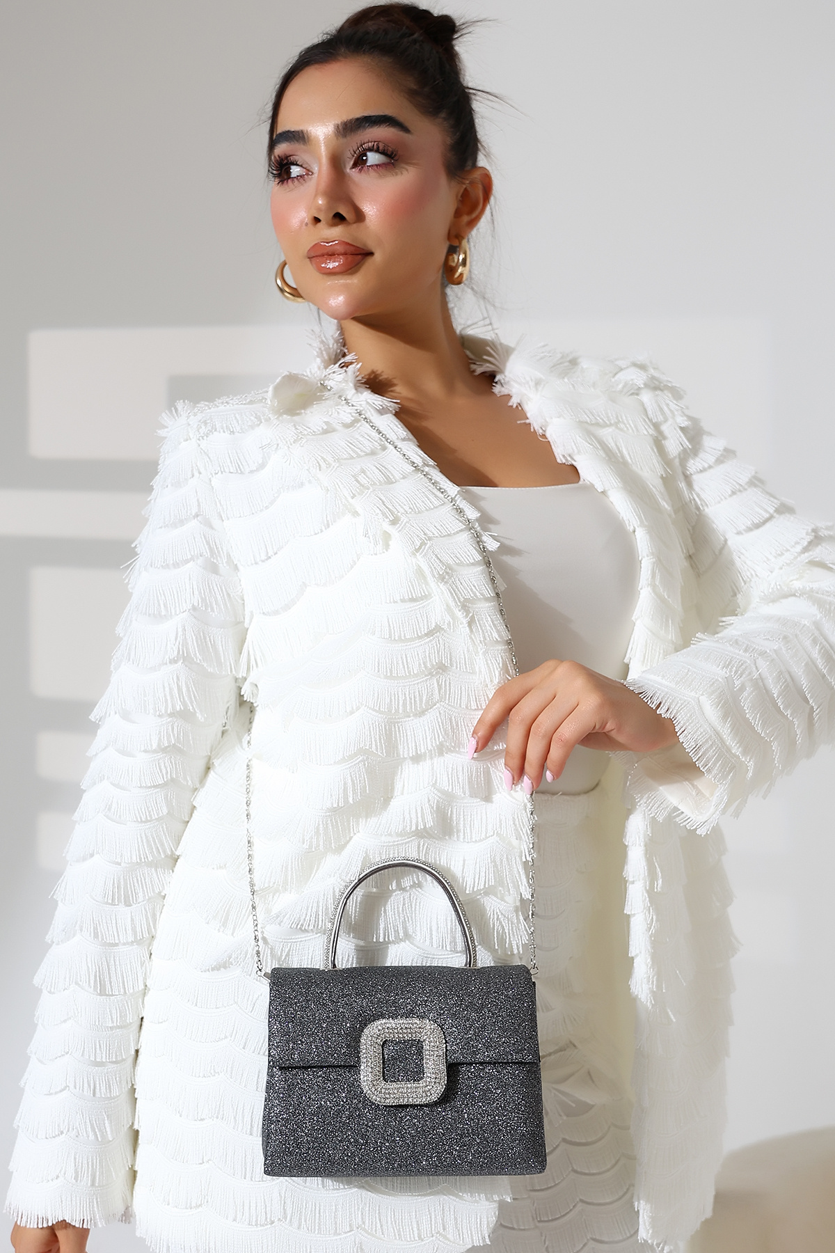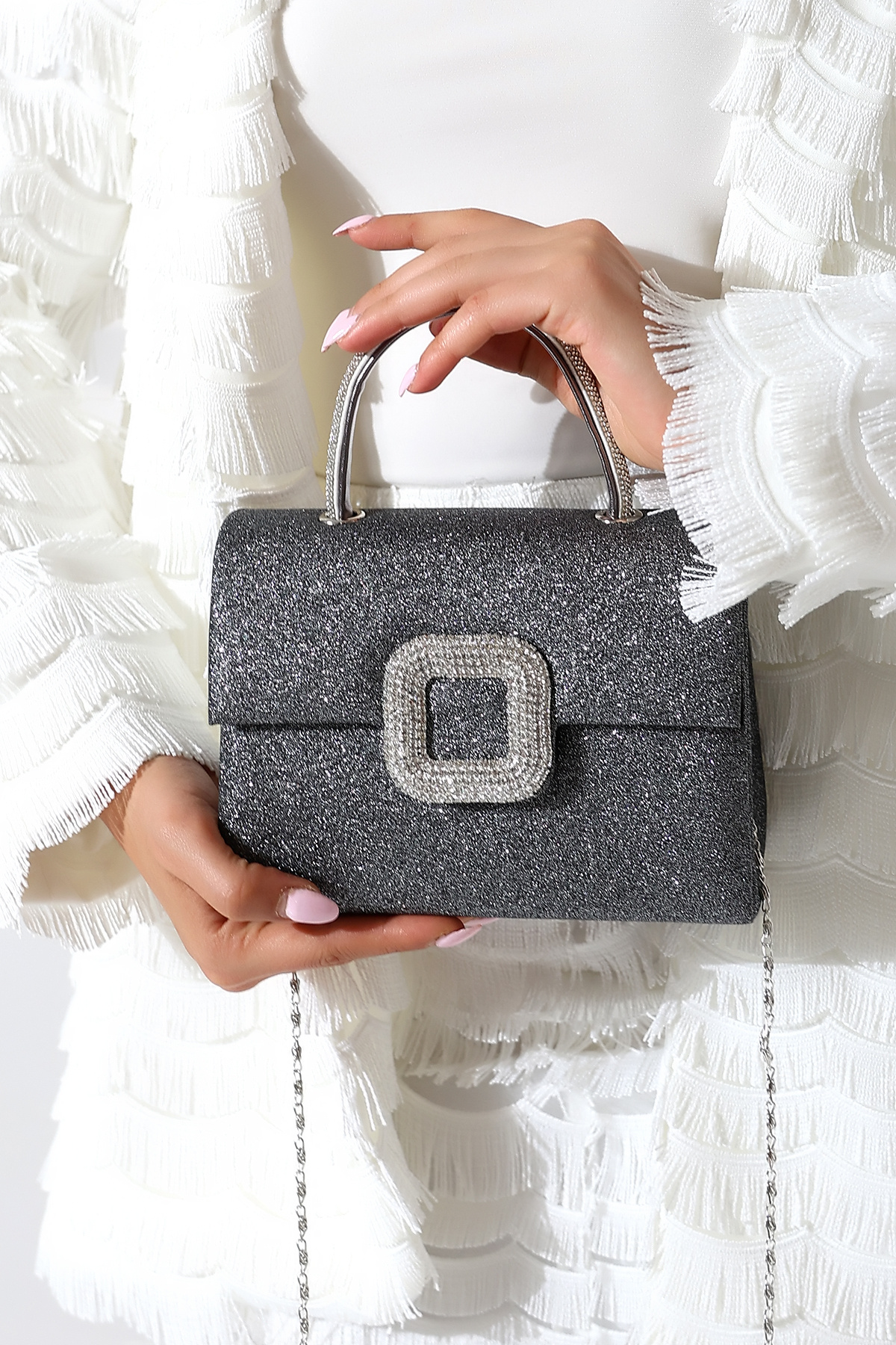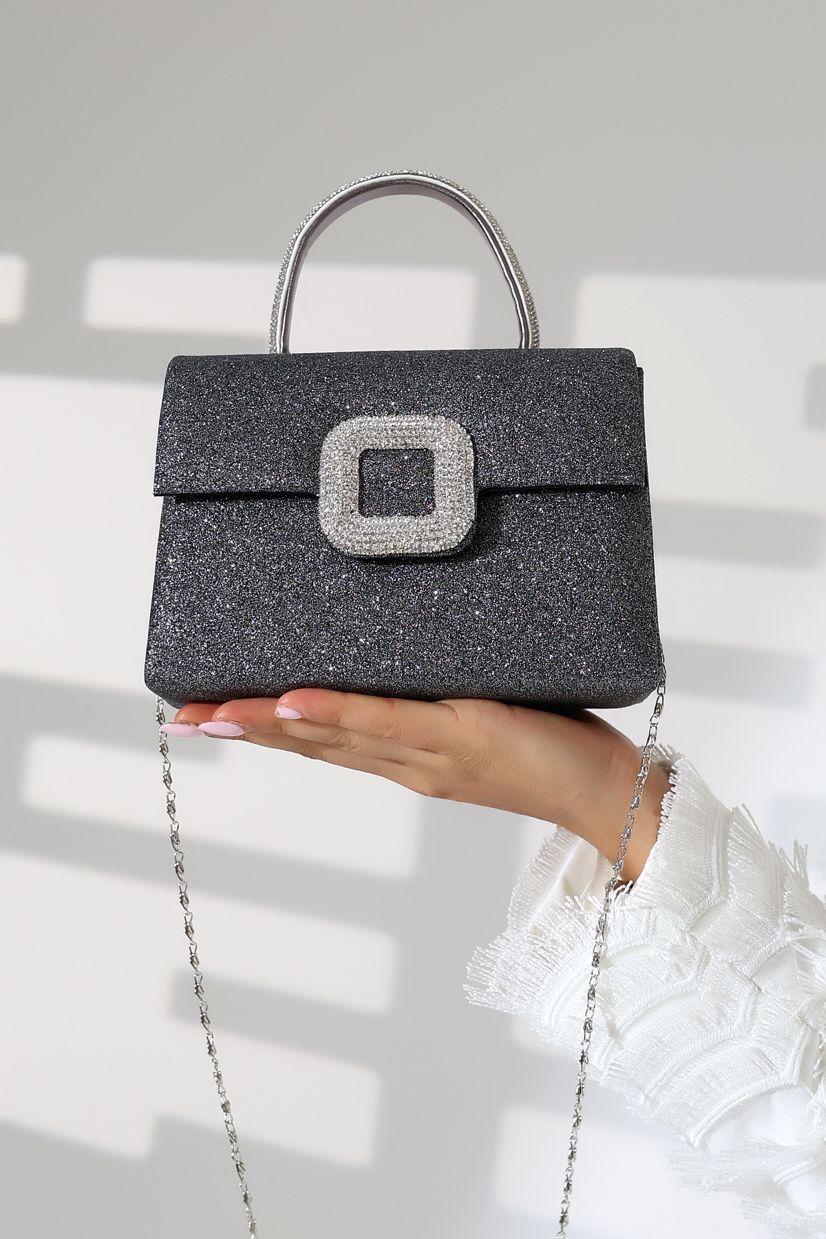 Kadın Simli Kulp Detaylı Zincir Askılı Abiye Çanta Kadın Simli Kulp Detaylı Zincir Askılı Abiye Çanta T8218 تک سایز