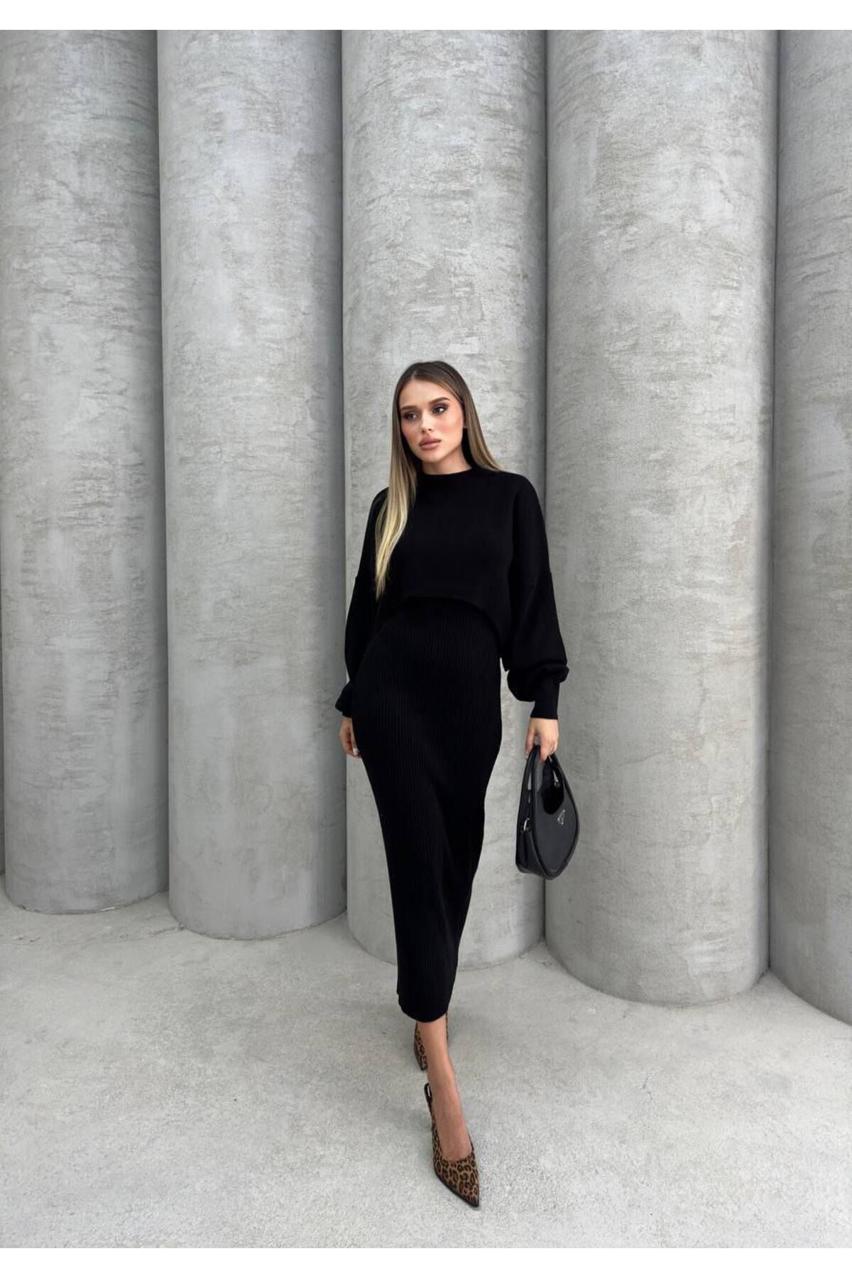 Kadın ekru askılı elbise bluz triko takım Kadın ekru askılı elbise bluz triko takım Z2028 Standart