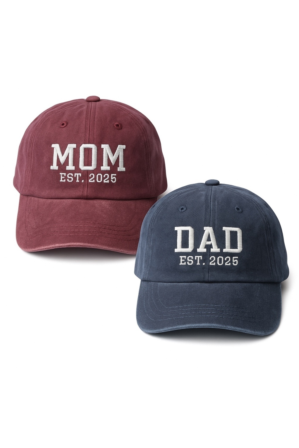 Nakışlı 2025 Bordo-Mavi Mom Dad Şapka 2li paket Anne Baba Yıkamalı Kumaşlı Şapka Pamuklu Ayarlı Nakışlı 2025 Bordo-Mavi Mom Dad Şapka 2li paket Anne Baba Yıkamalı Kumaşlı Şapka Pamuklu Ayarlı Standart