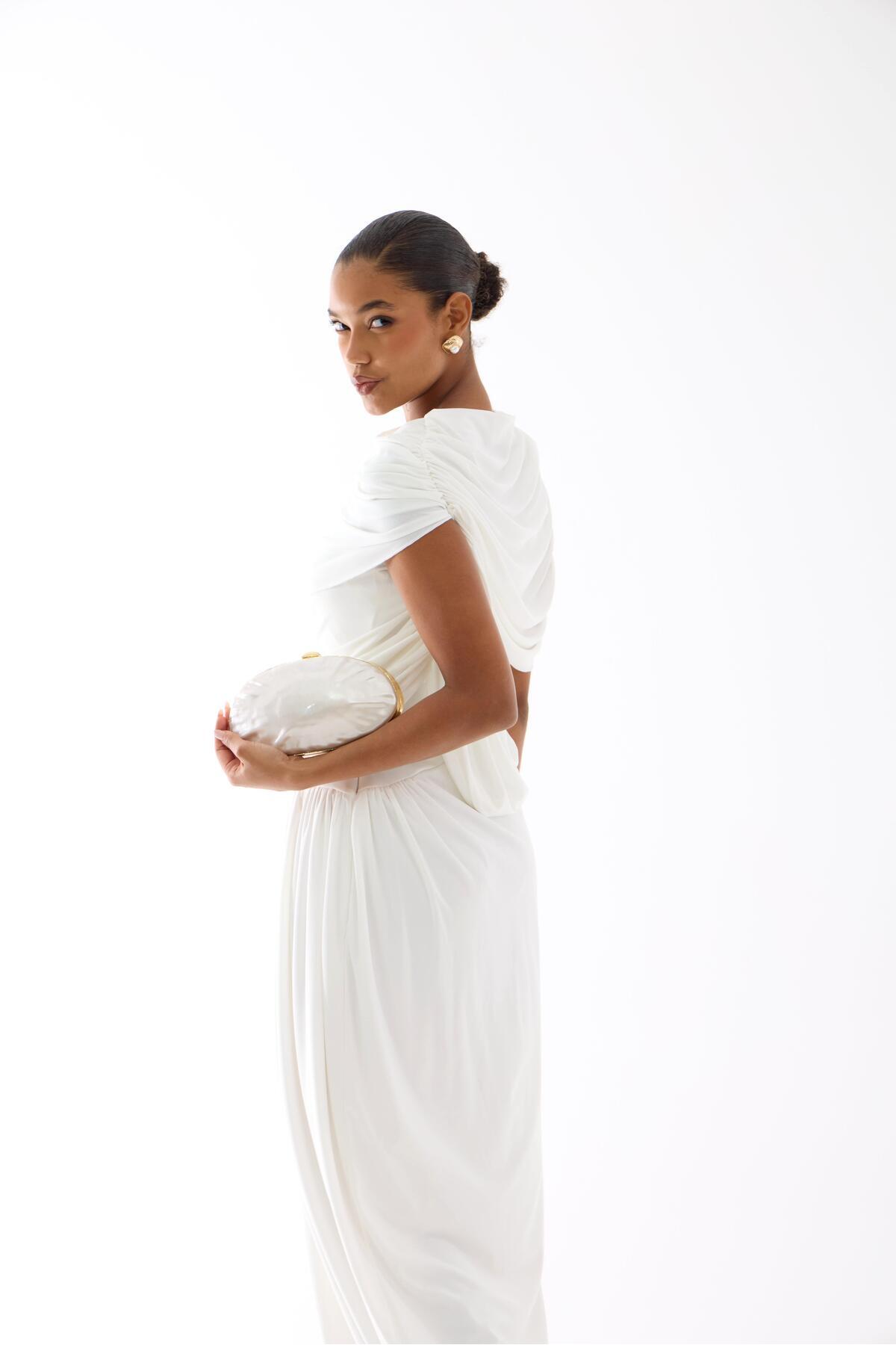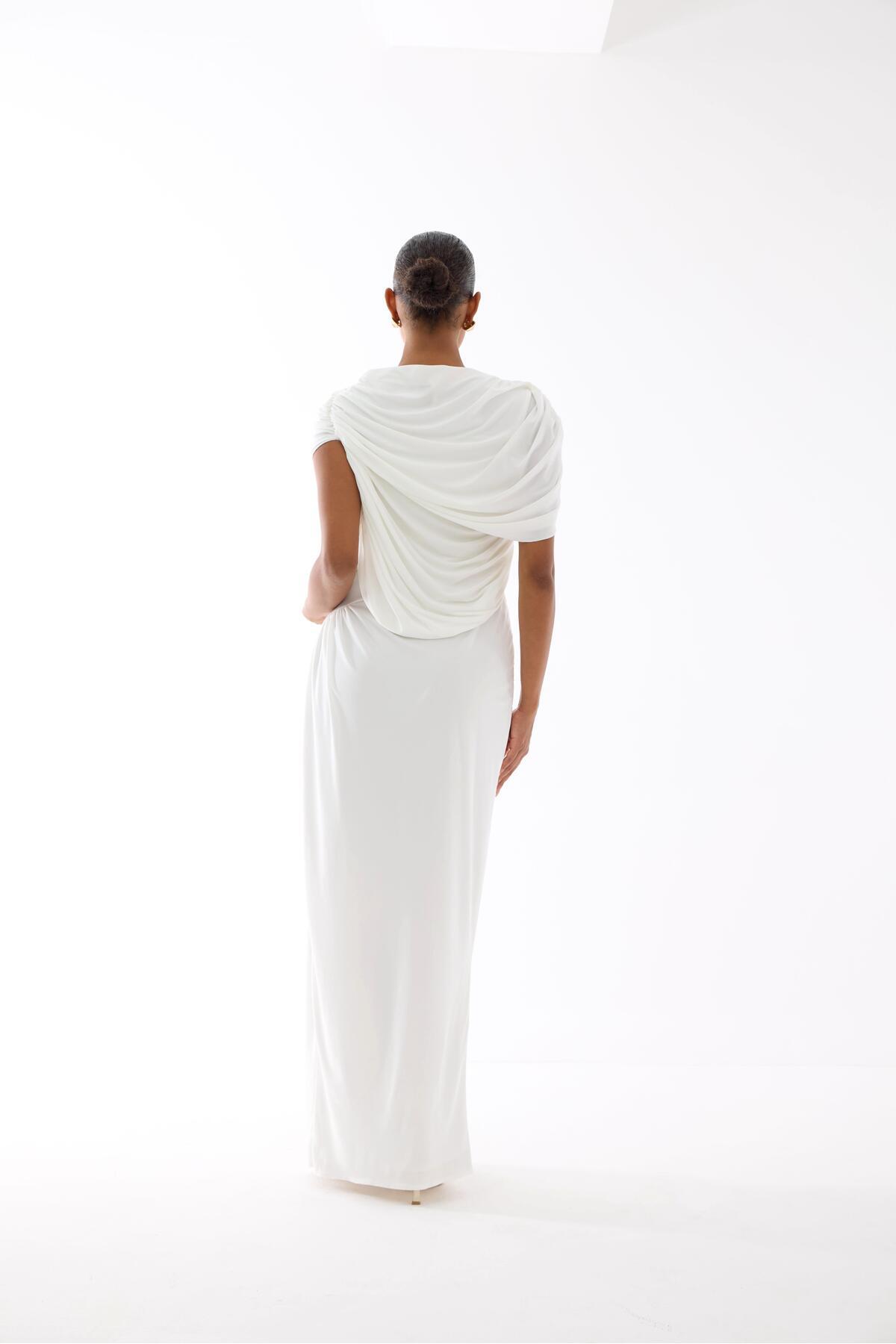Kayık Yaka Beyaz Uzun Tasarım Elbise Kayık Yaka Beyaz Uzun Tasarım Elbise 11903 L