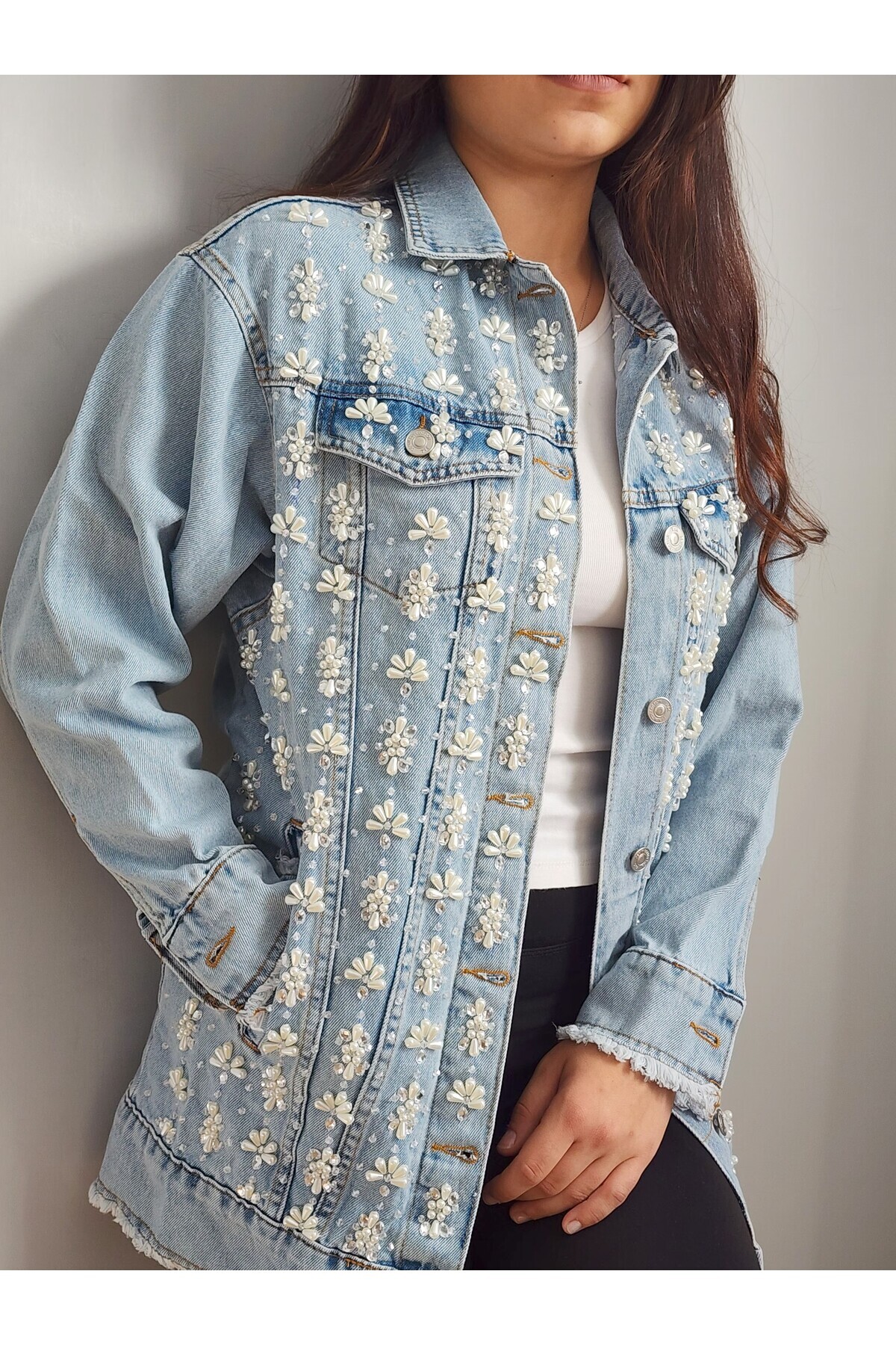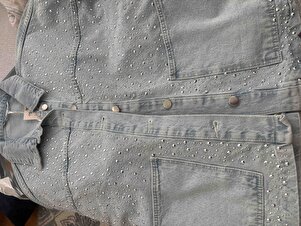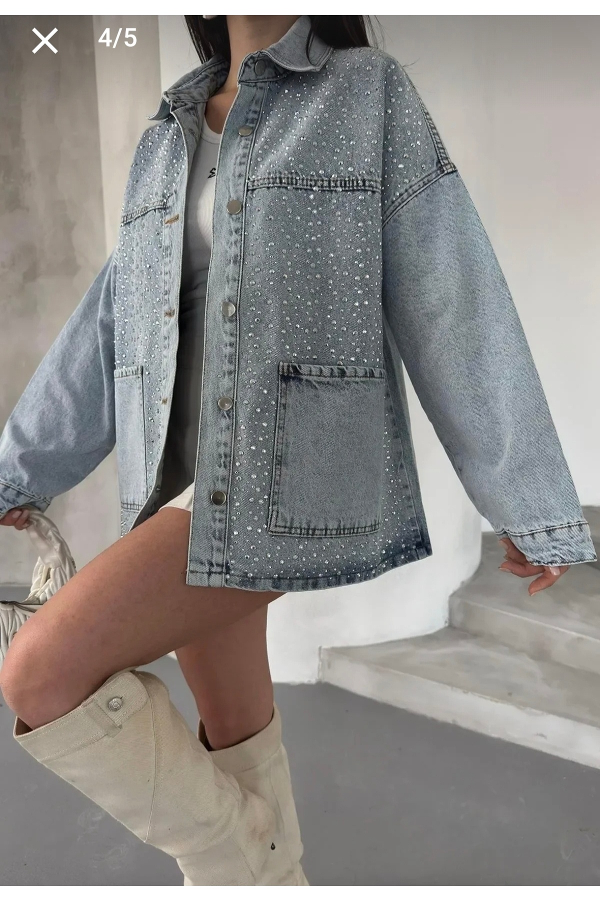 Taşlı Parlak Mavi Kadın Kot Ceket/ Tasarım Denim Oversize Kot Mont Taşlı Parlak Mavi Kadın Kot Ceket/ Tasarım Denim Oversize Kot Mont t4309 L