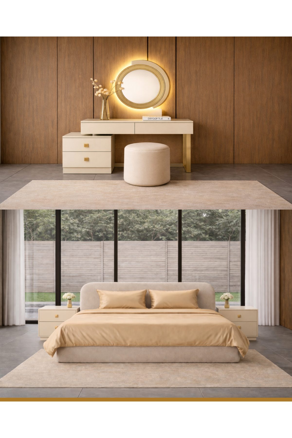 - تنظیم محتوا : Karyola + 2 Komodin + Şifonyer + Gardırop + Ayna