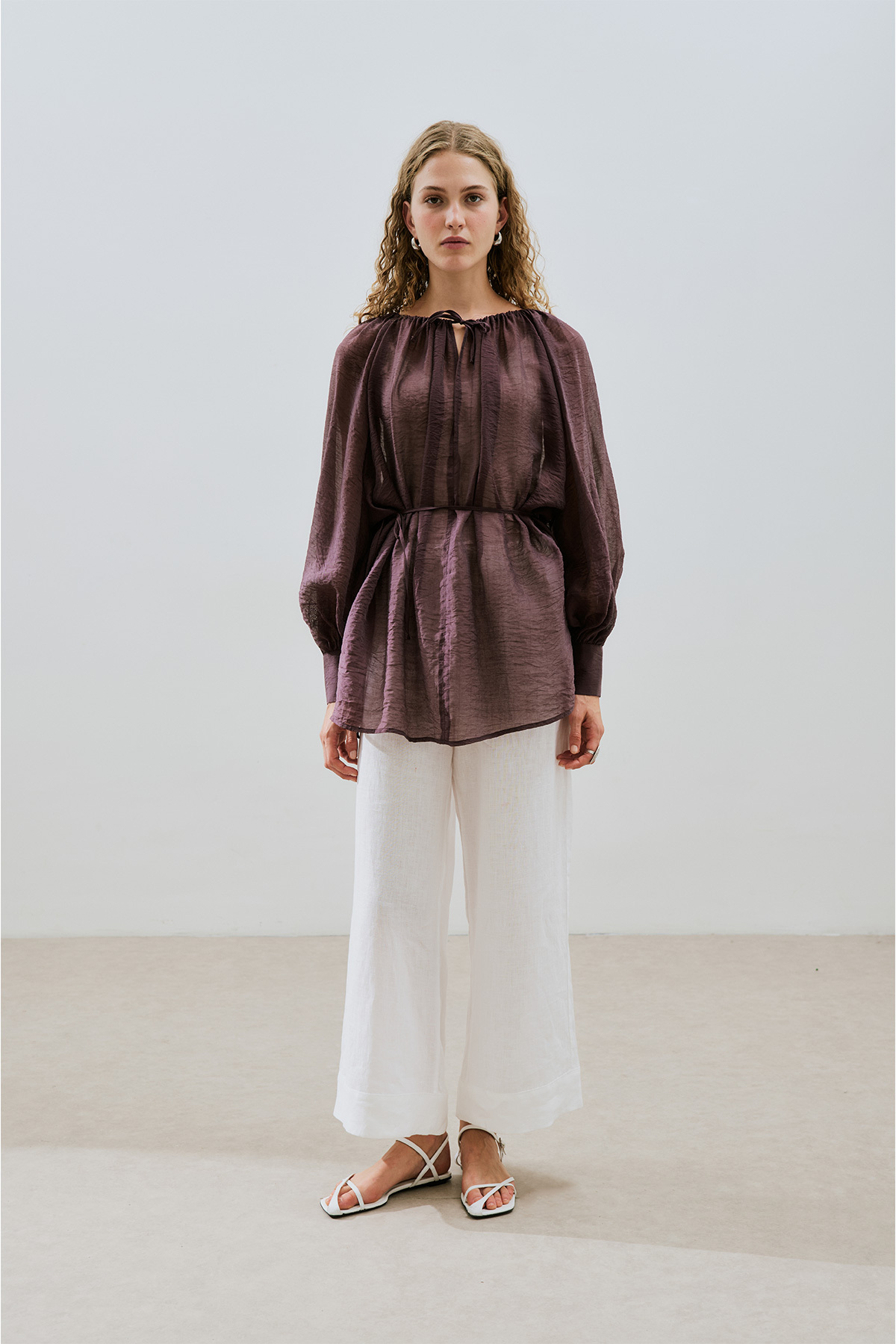 GENİŞ MANŞETLİ KUŞAKLI TUNİK BORDO GENİŞ MANŞETLİ KUŞAKLI TUNİK BORDO SS25TNK00013 M/L