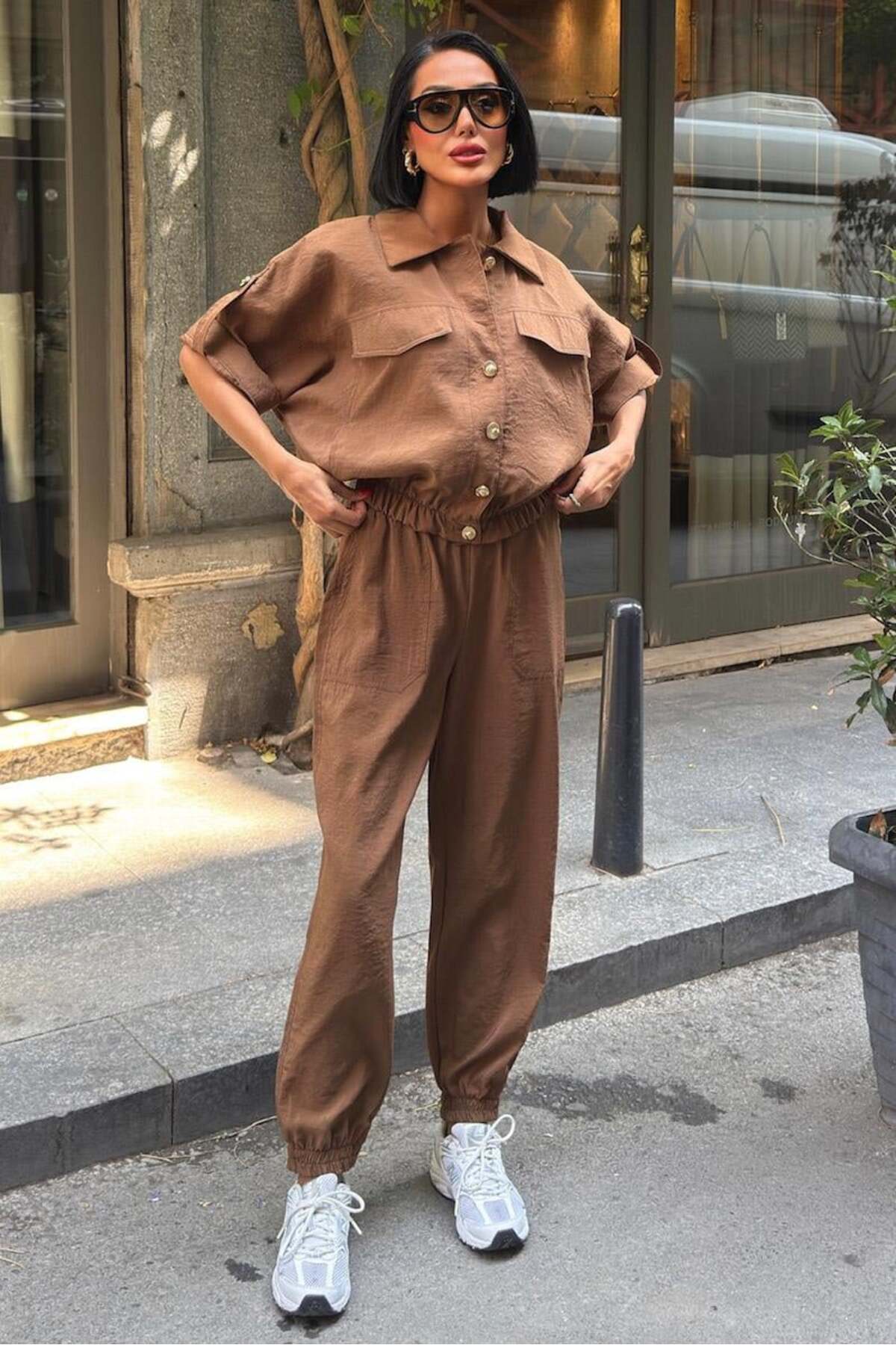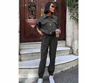 Gold Düğme Detaylı Lastikli Rahat Takım -HAKİ Gold Düğme Detaylı Lastikli Rahat Takım -HAKİ S6K10243 XL