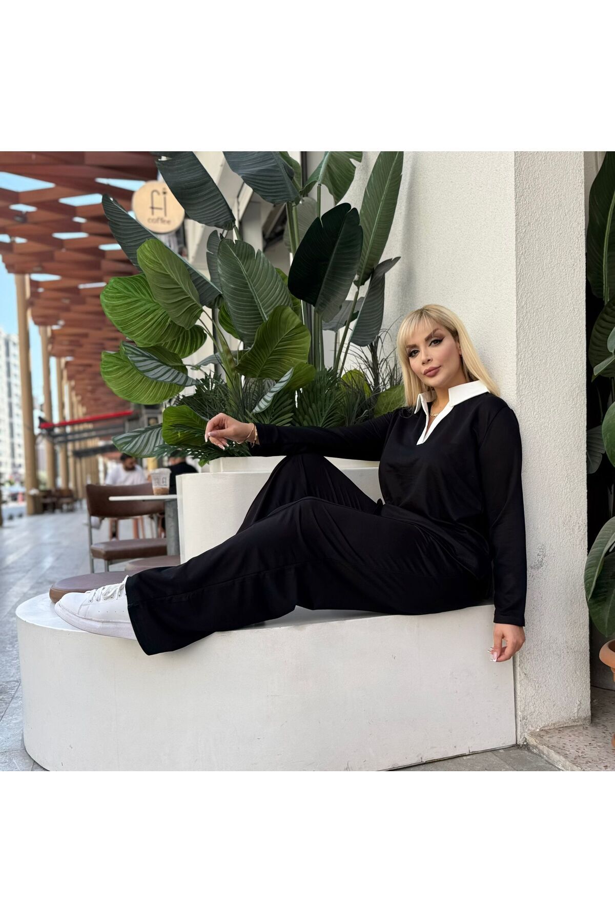 Kadın Büyük Beden Gömlek Yaka Detaylı Esnek Eşofman Takımı 24904 Kadın Büyük Beden Gömlek Yaka Detaylı Esnek Eşofman Takımı 24904 50-52