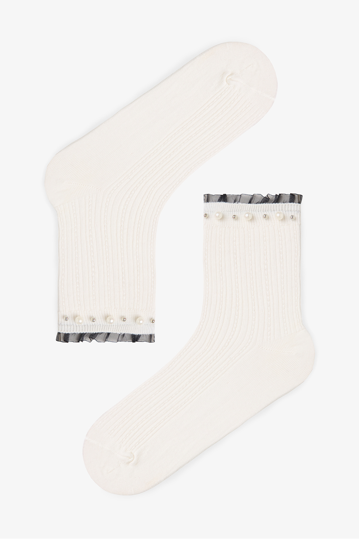 Pamuklu Bilek Kısmı Kurdele Detaylı ve Tül Fırfırlı Soket Çorap Pamuklu Bilek Kısmı Kurdele Detaylı ve Tül Fırfırlı Soket Çorap PHH0NID325SK-SMM 36 - 40
