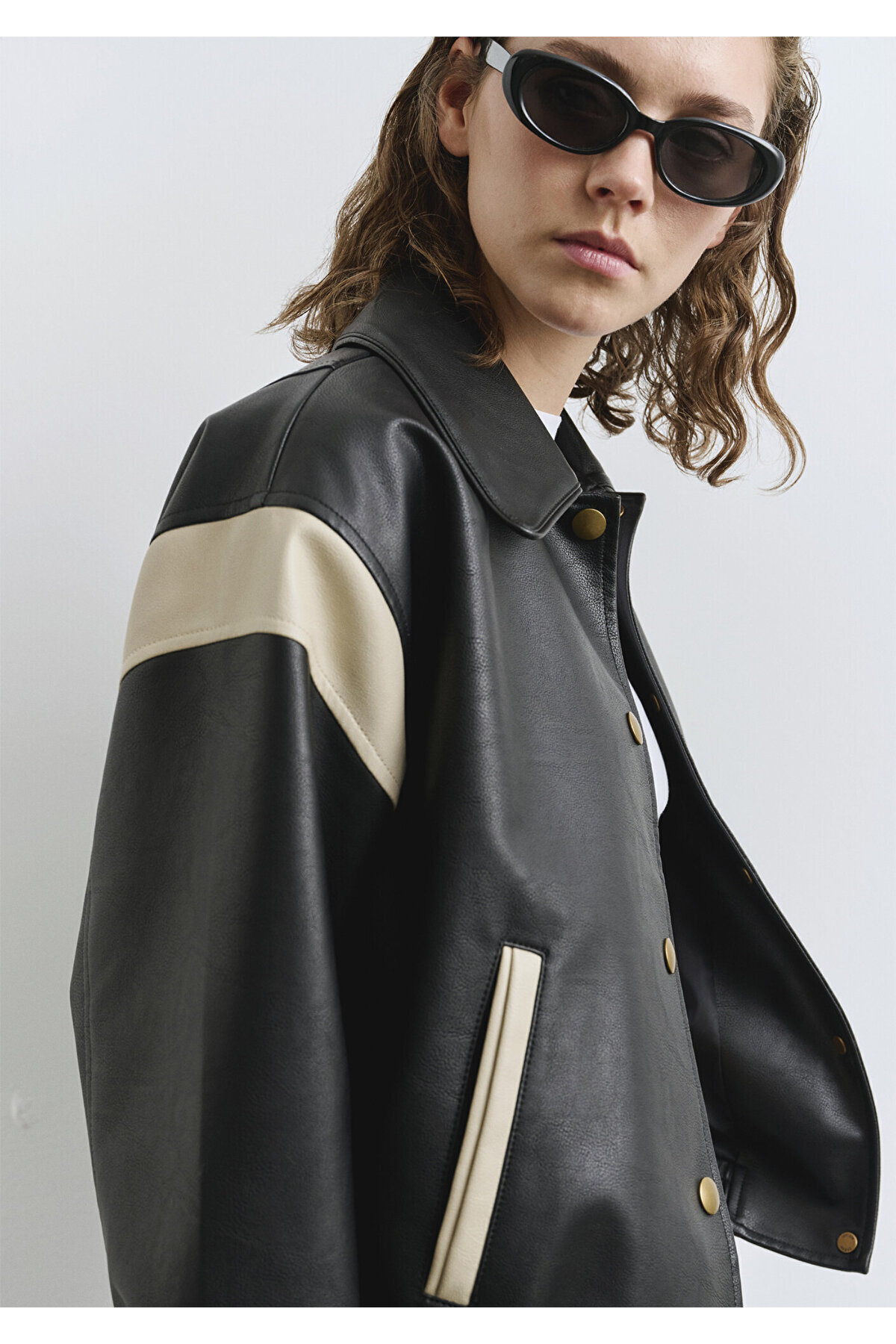 Siyah Suni Deri Ceket Loose Fit / Bol Rahat Kesim 1110727-900 Siyah Suni Deri Ceket Loose Fit / Bol Rahat Kesim 1110727-900 L
