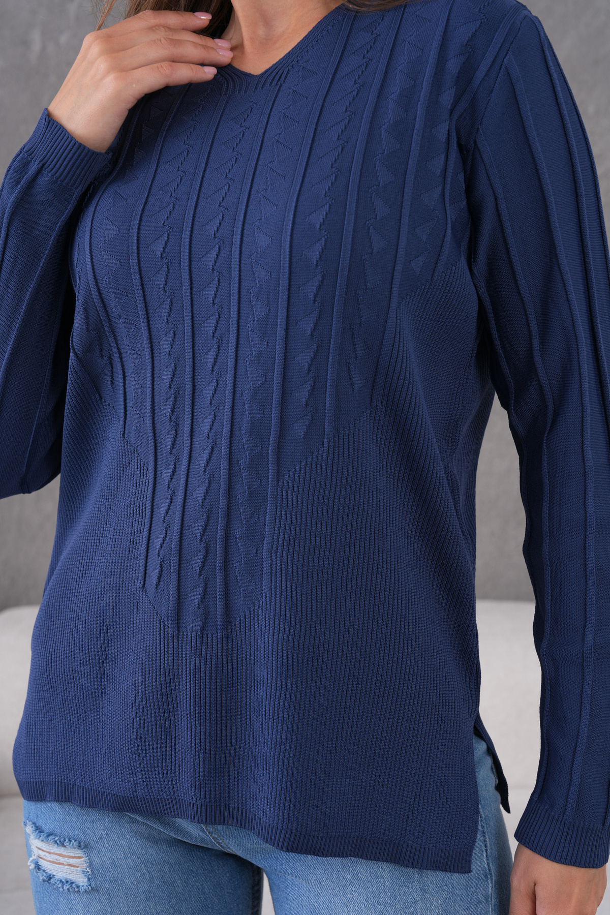 Fermuarlı Oversize Örgü Detaylı Kadın Triko Yün Kazak Fermuarlı Oversize Örgü Detaylı Kadın Triko Yün Kazak 4252 Standart
