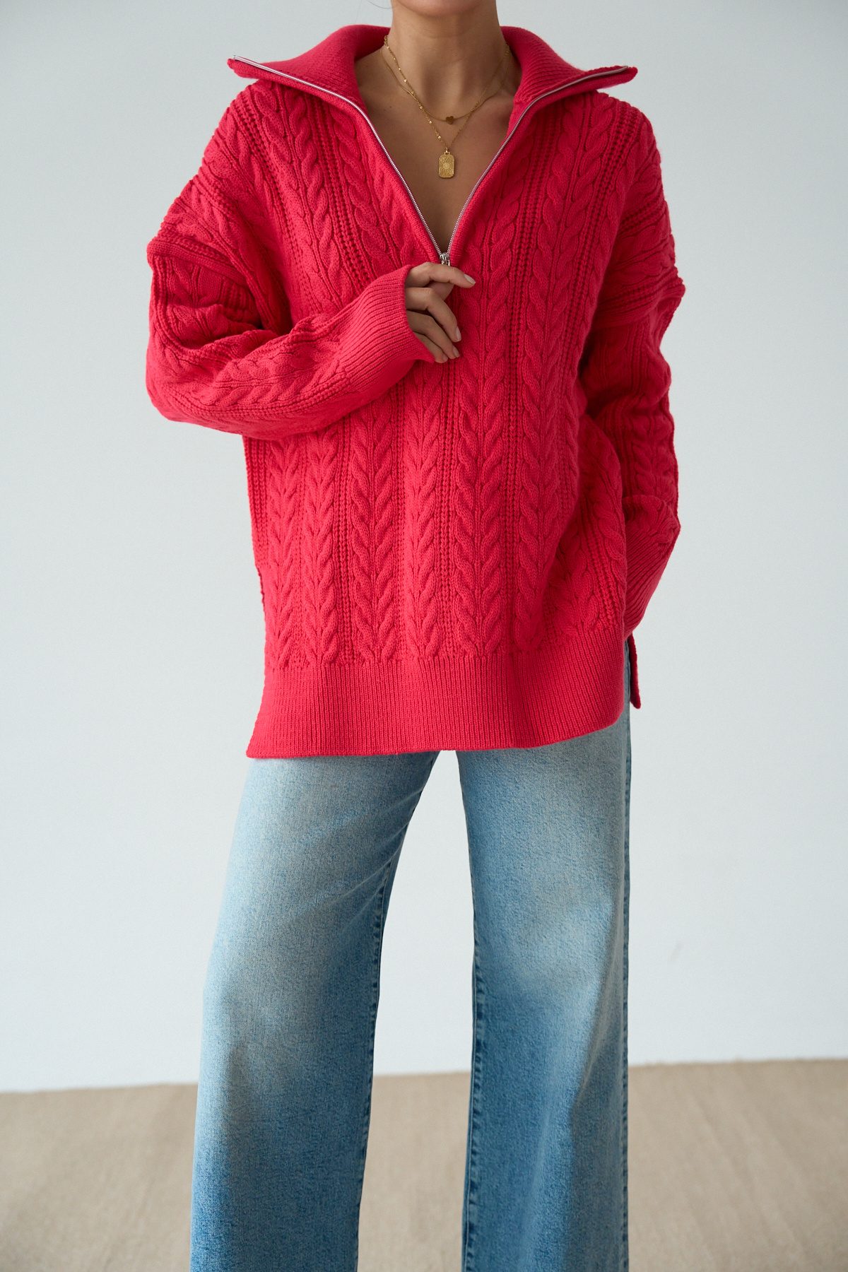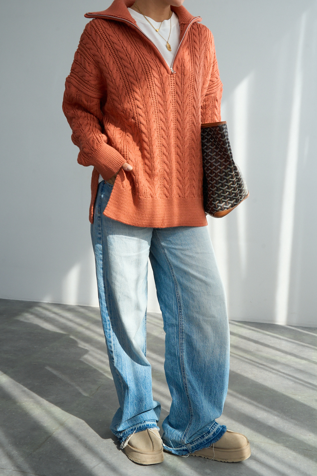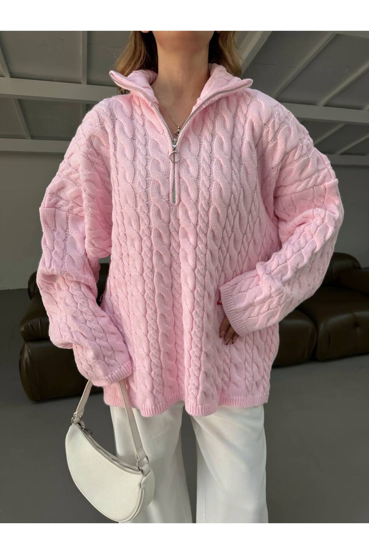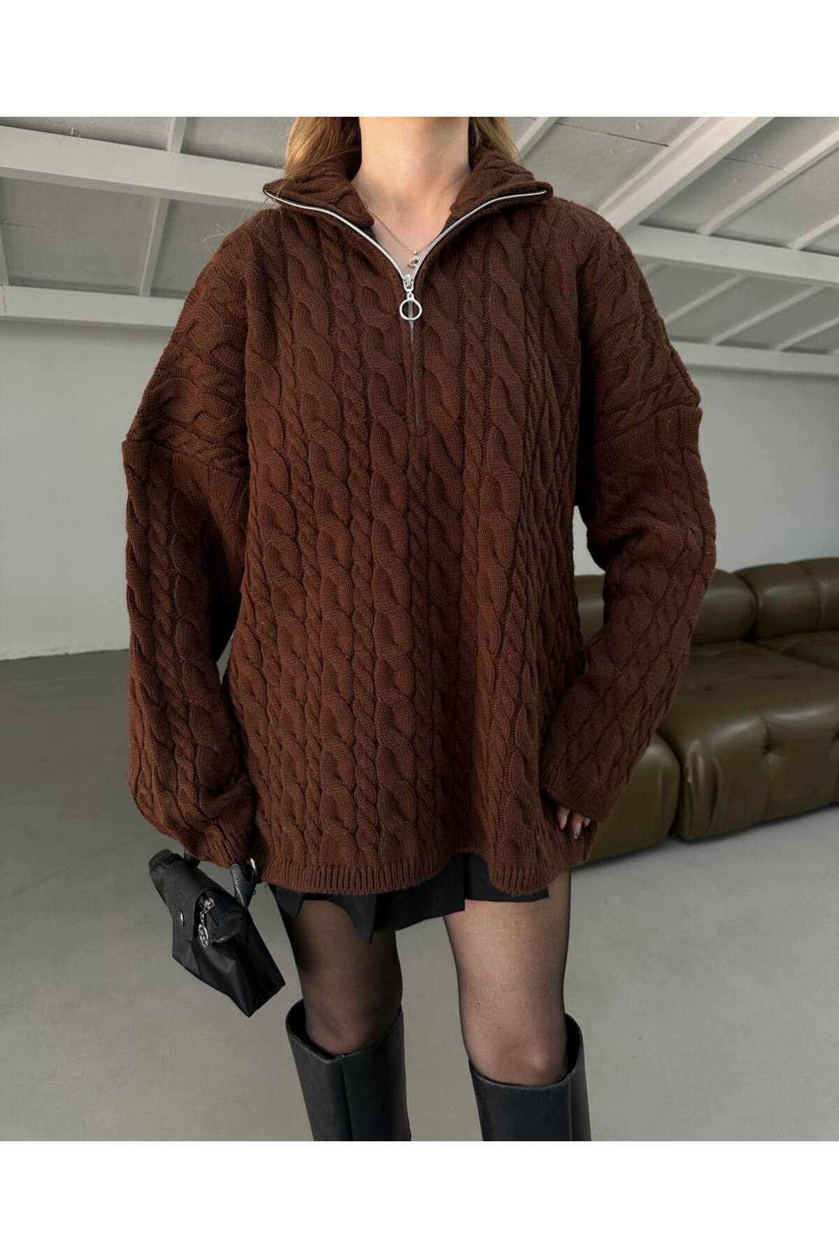 Fermuarlı Oversize Örgü Detaylı Kadın Triko Yün Kazak Fermuarlı Oversize Örgü Detaylı Kadın Triko Yün Kazak 4252 Standart