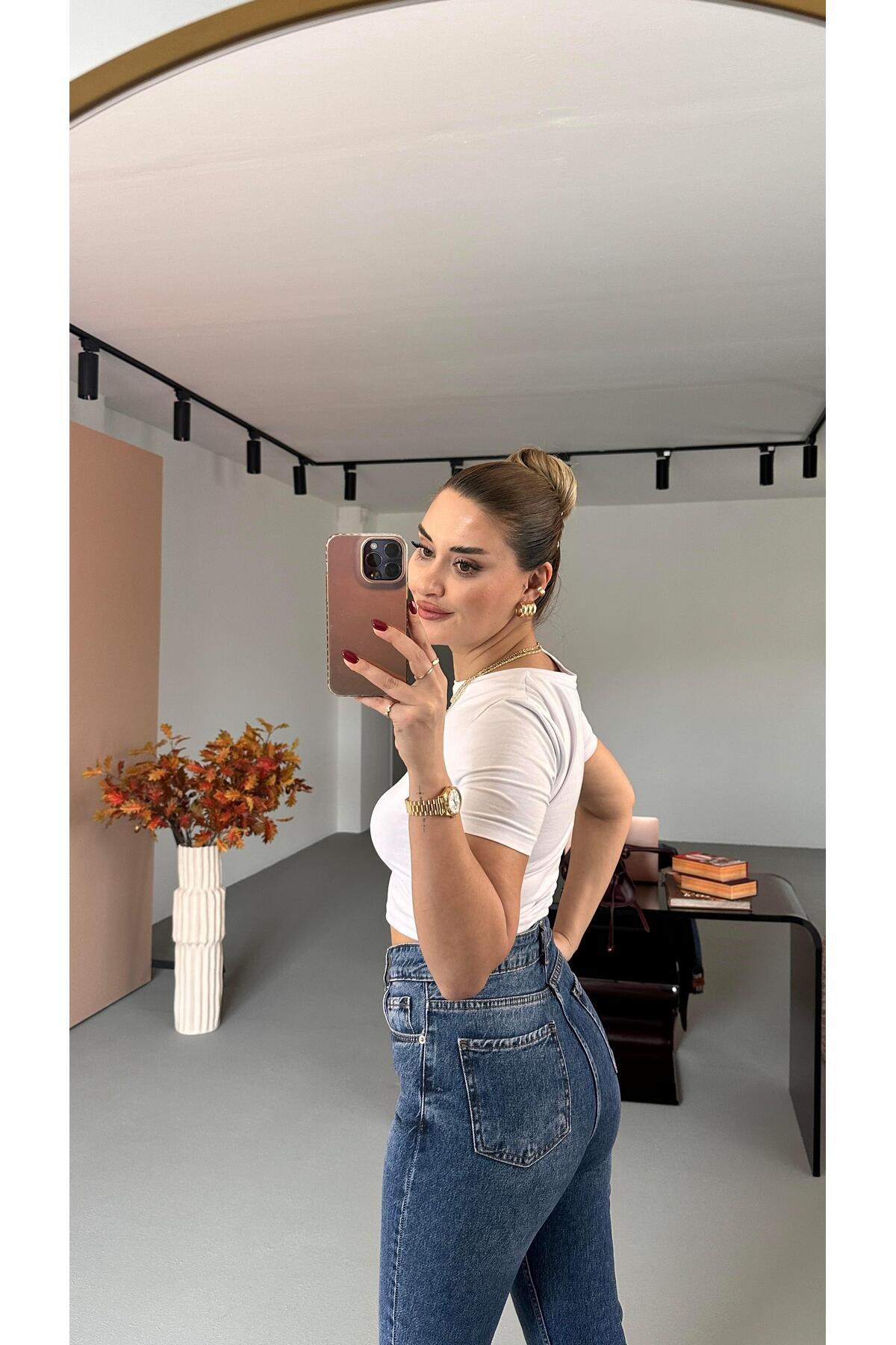Premium Seri Kesik Paça Mavi Boyfit Jean Premium Seri Kesik Paça Mavi Boyfit Jean PNT-0481-MV 42