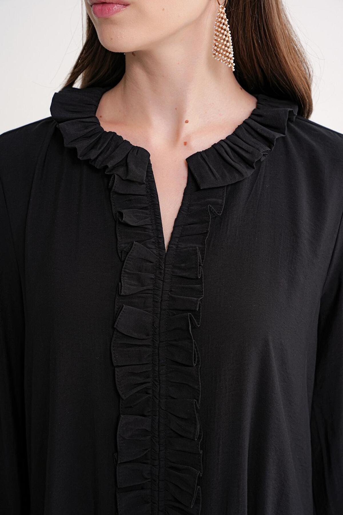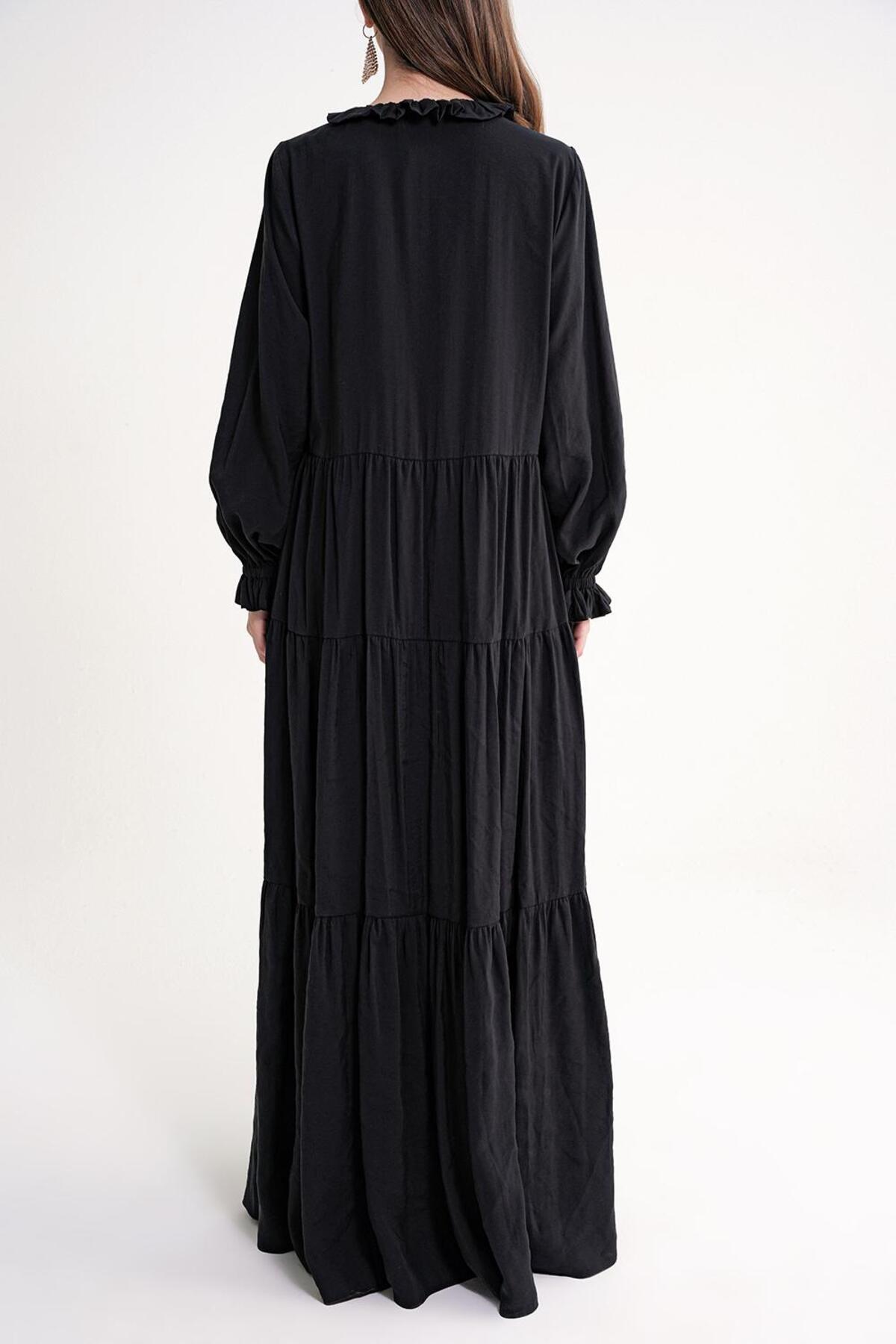 Siyah Fırfır detaylı bol kesim uzun elbise 94656 Siyah Fırfır detaylı bol kesim uzun elbise 94656 M18251094656 L