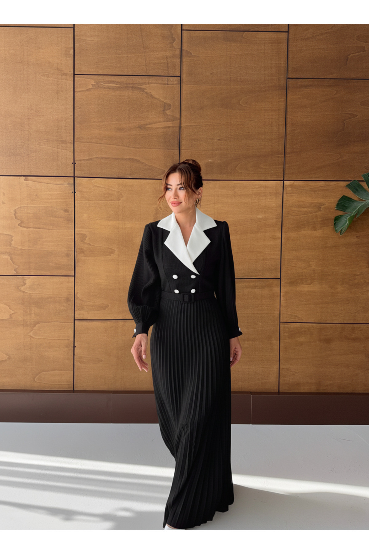 Devetüyü Pile detaylı bol kesim keten elbise 94653 Devetüyü Pile detaylı bol kesim keten elbise 94653 M18251094653 L