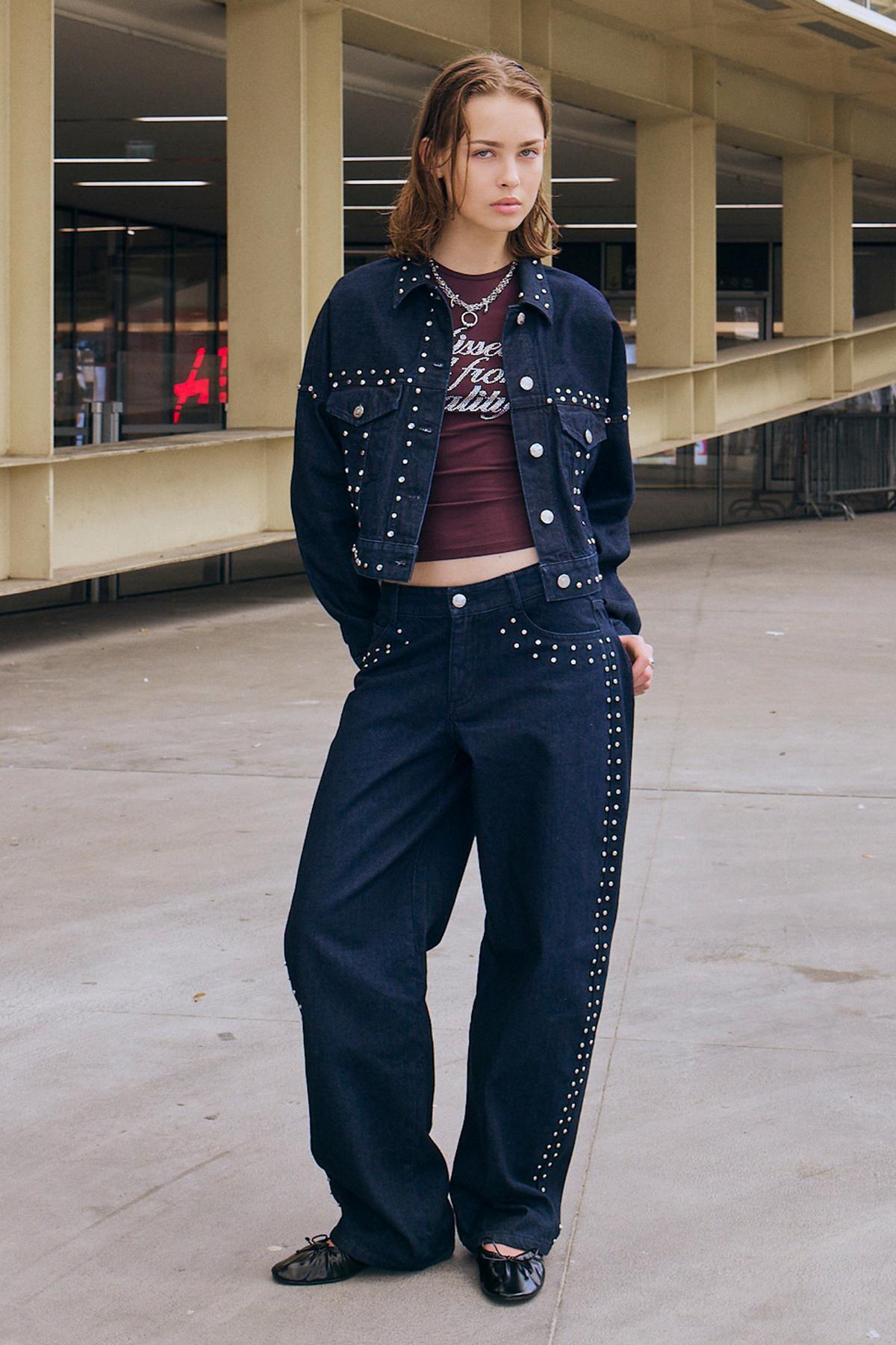 Zımbalı crop denim ceket Zımbalı crop denim ceket 06586074 L