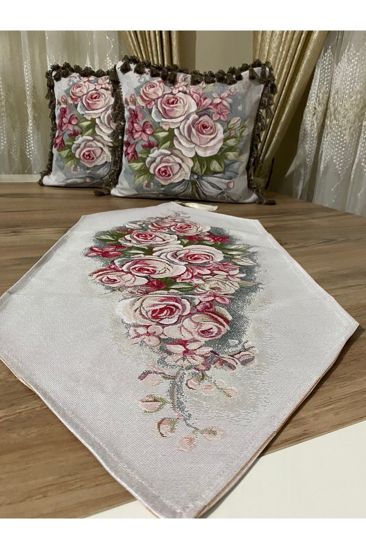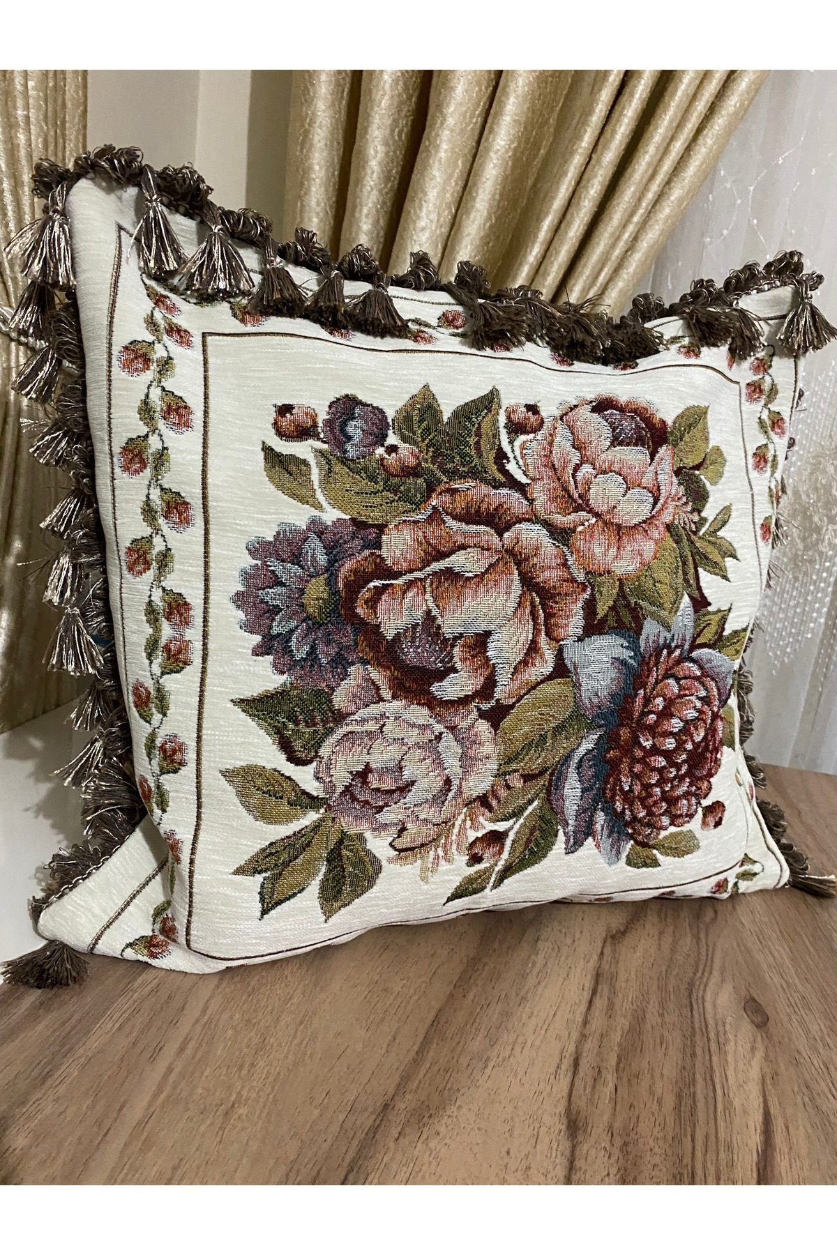 Jakarlı Goblen Dokuma Dekoratif Kırlent Kılıfı ve 40xyuvarlak Jakarlı Goblen Dokuma Dekoratif Kırlent Kılıfı ve 40xyuvarlak 12443 45 x 45